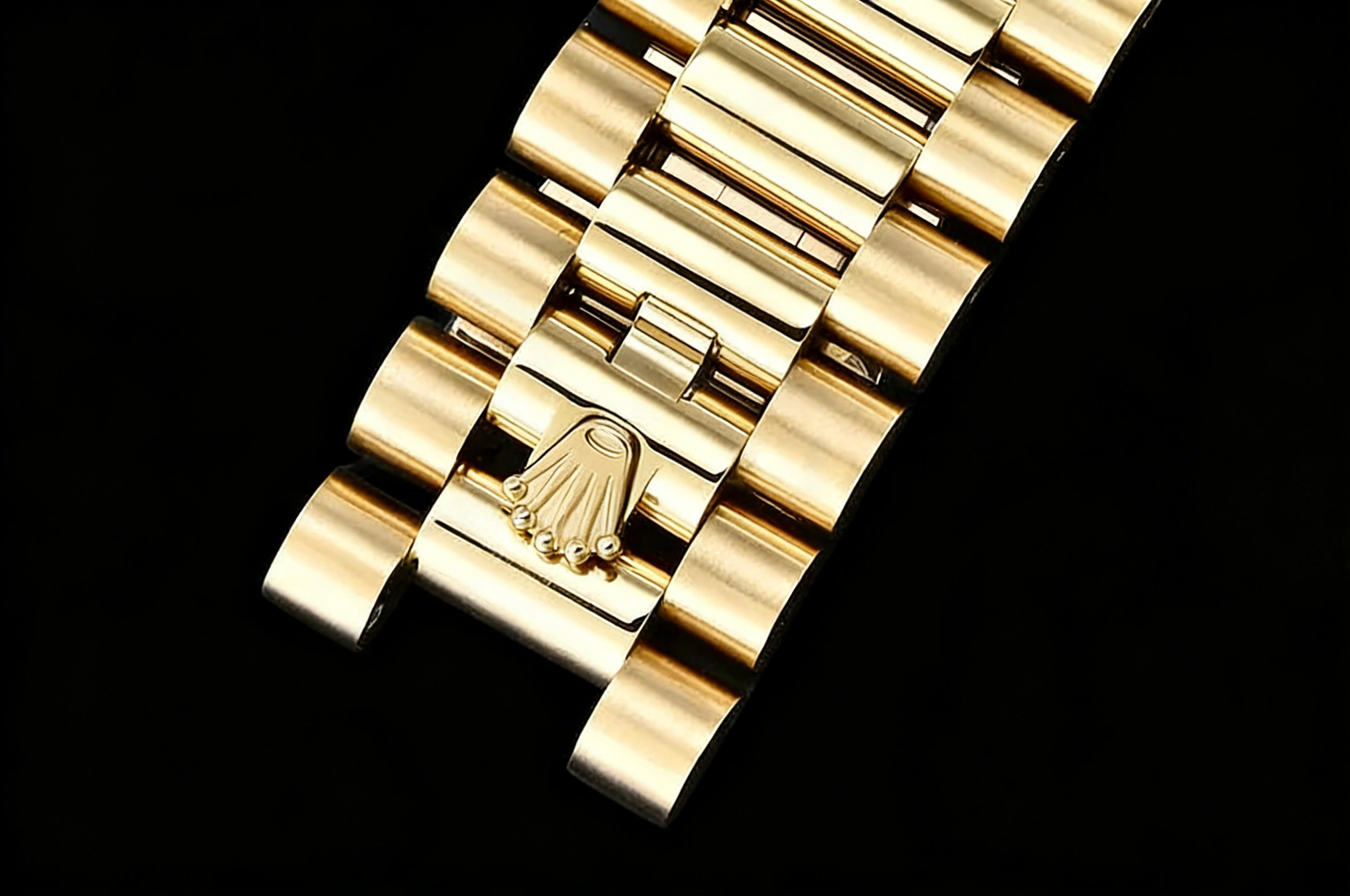 BRACELET: 18K Yellow Gold Plated New Style 2 Piece End Link President Stainless Steel 904L Link Bracelet with Single Fold Deployant Clasp