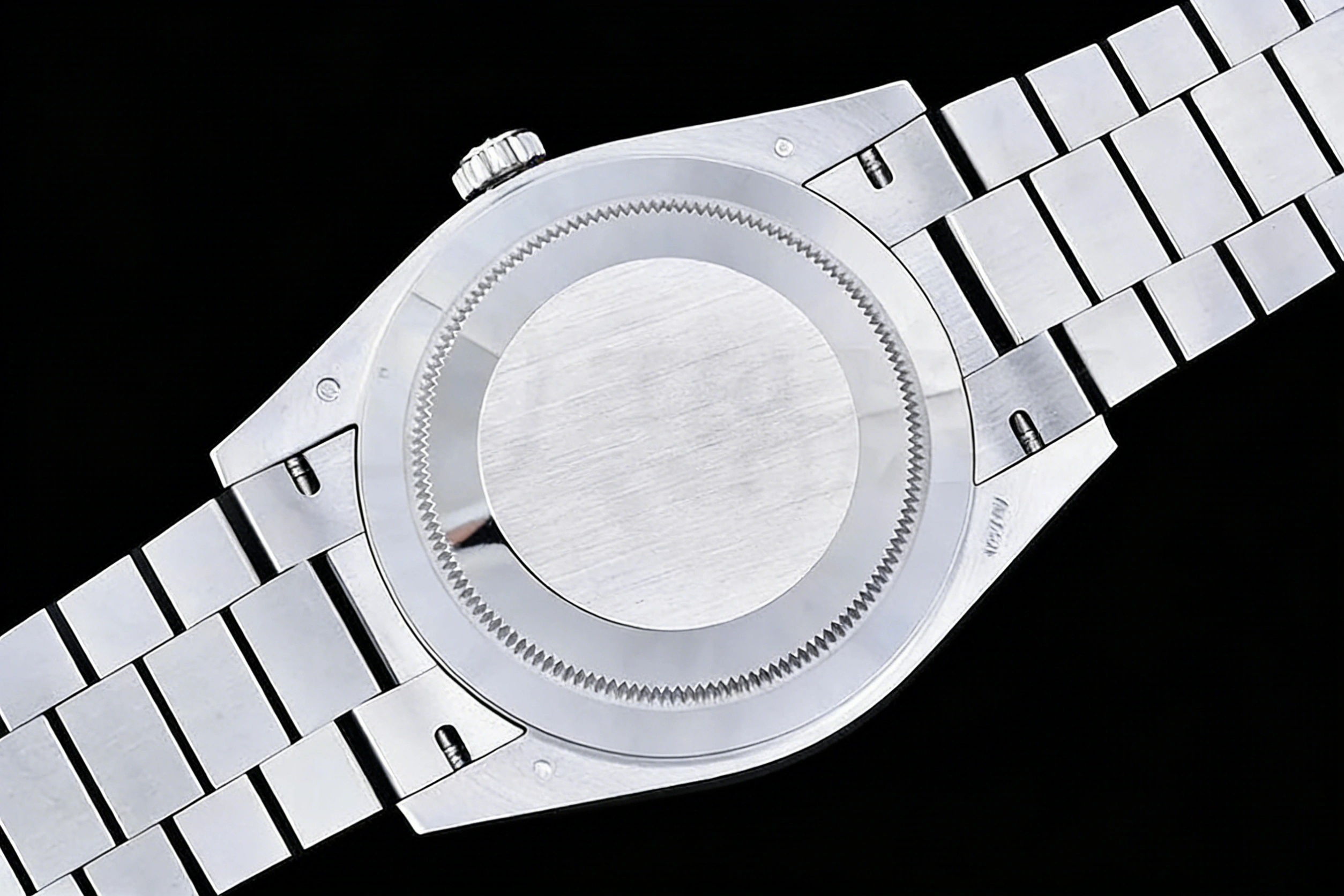 CASE MATERIAL: 18K White Gold Plated High Grade Solid Stainless Steel 904L (with Cu-W metal added to be closer to gen weight)