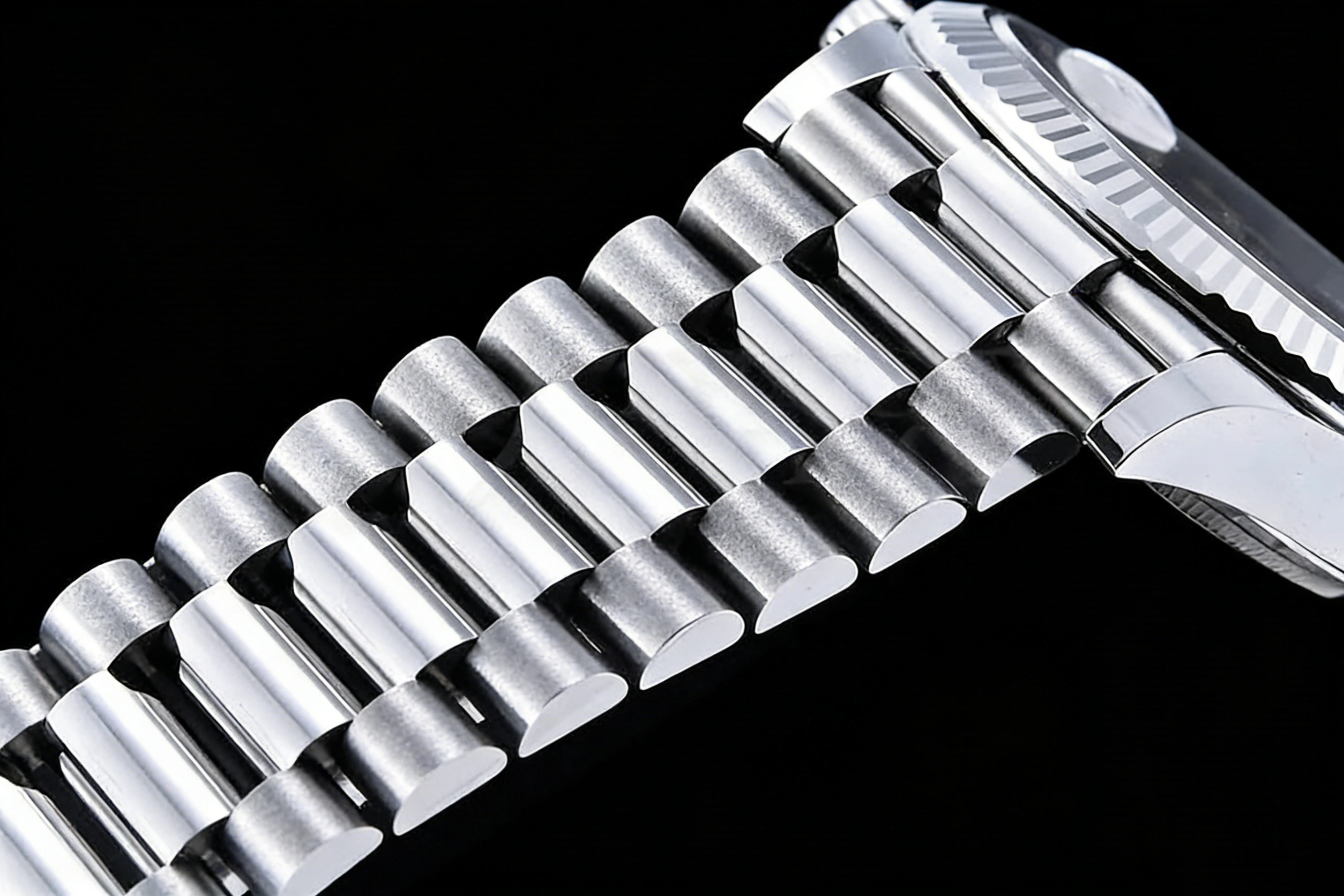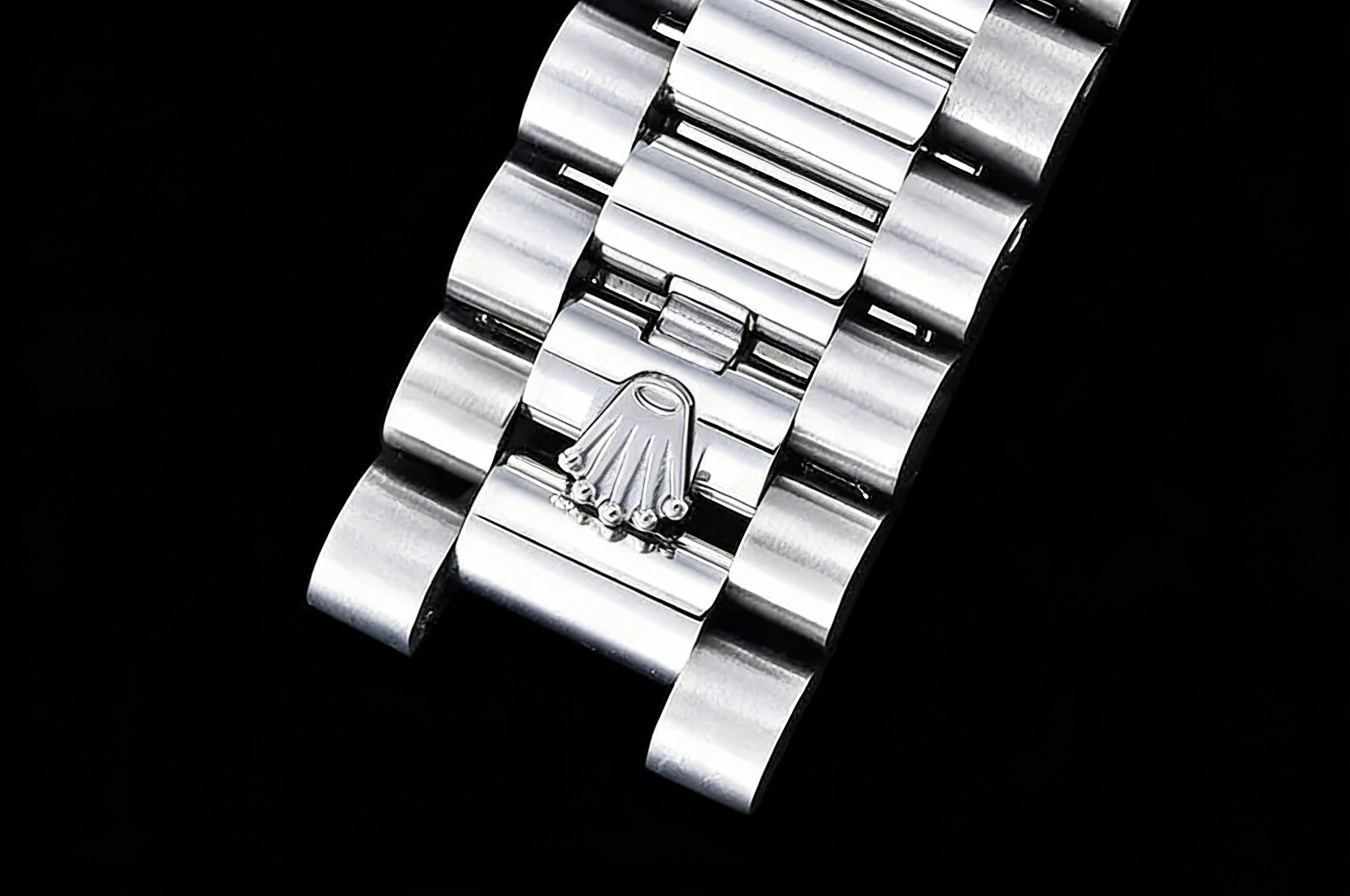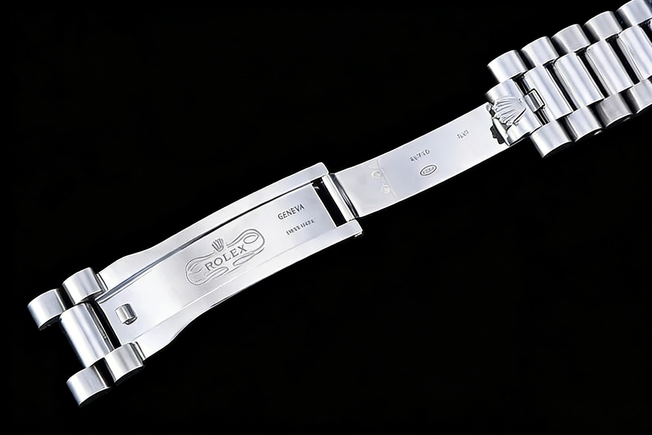 BRACELET: 18K White Gold Plated New Style 2 Piece End Link President Stainless Steel 904L Link Bracelet with Single Fold Deployant Clasp