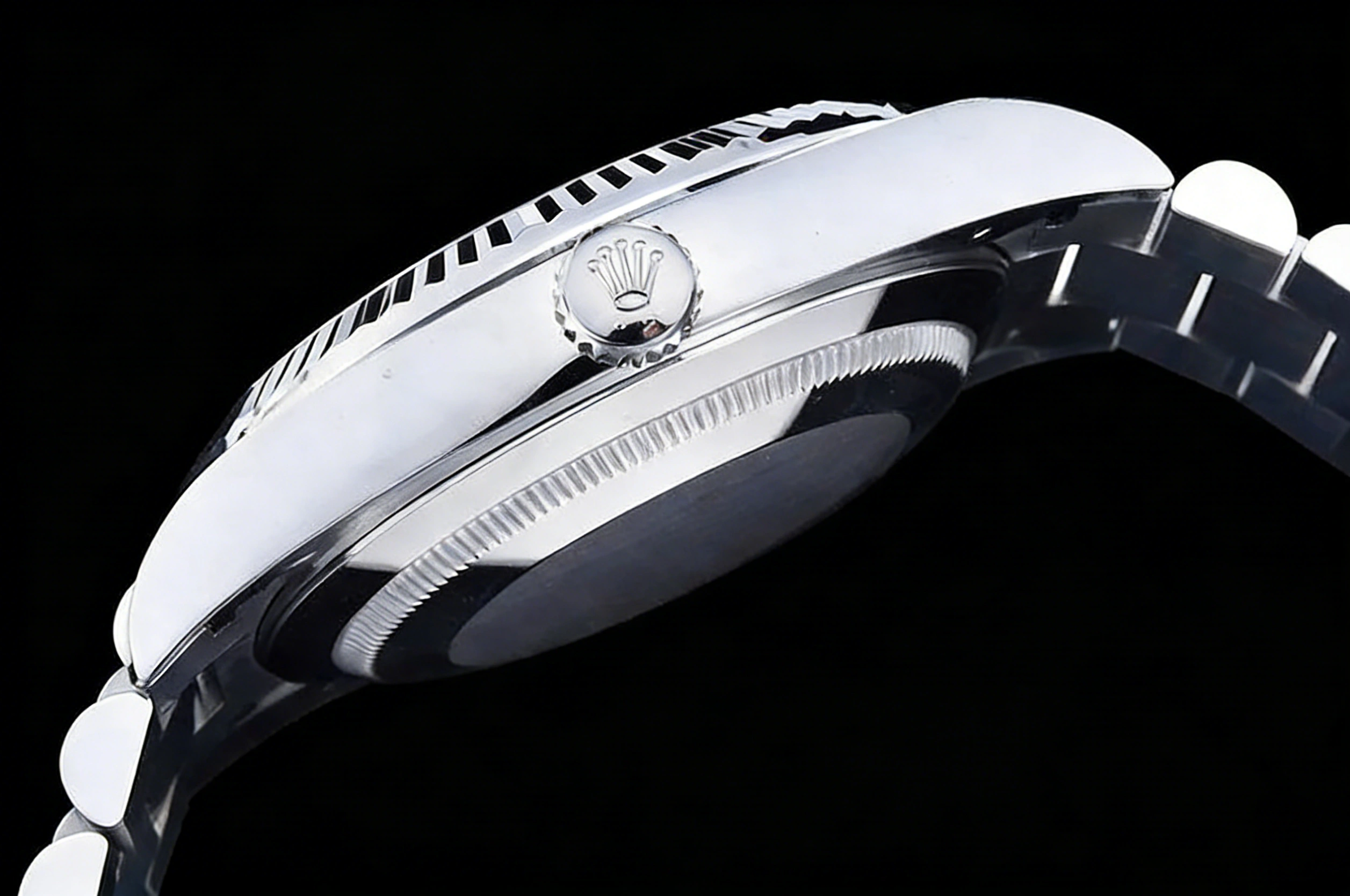 MOVEMENT: Platinum Plated Asia Clone SH3255 Automatic (28800bph) with decorated bridges & plates like the real Rolex Caliber 3255