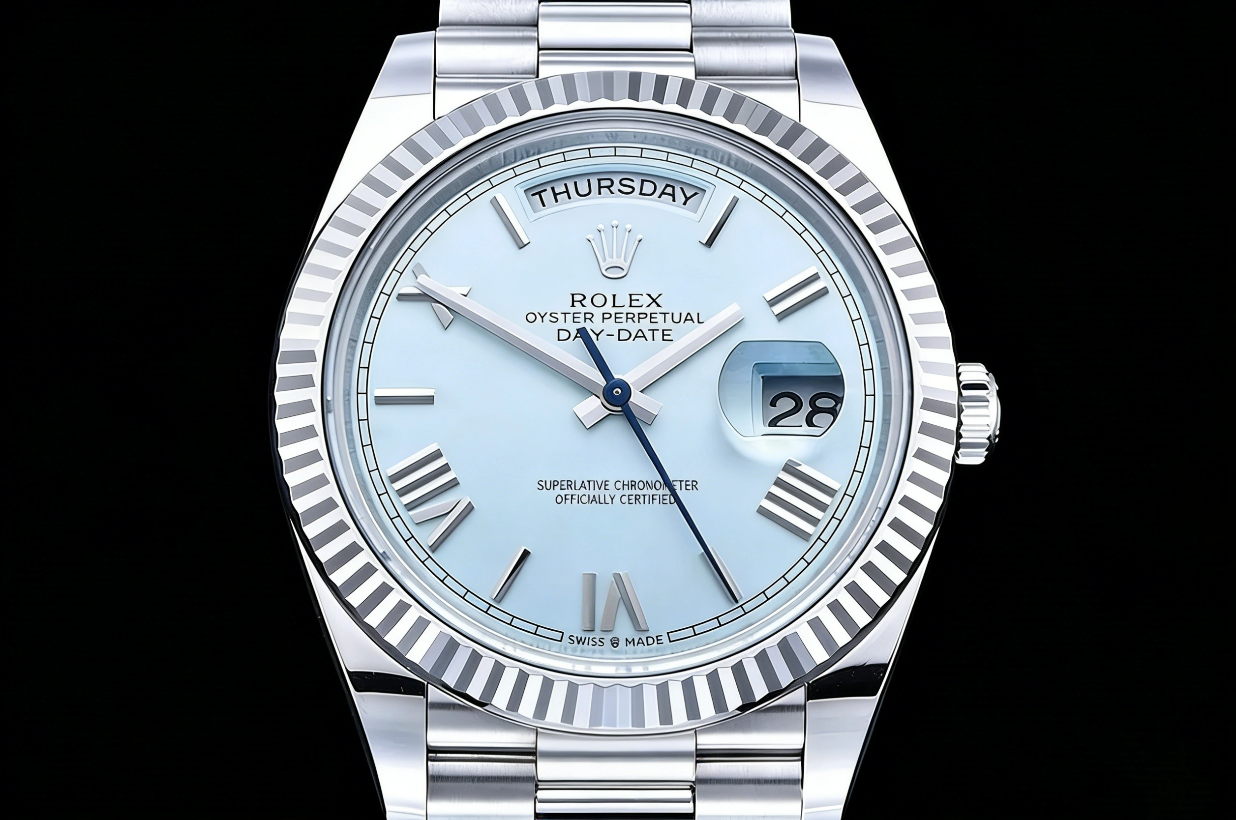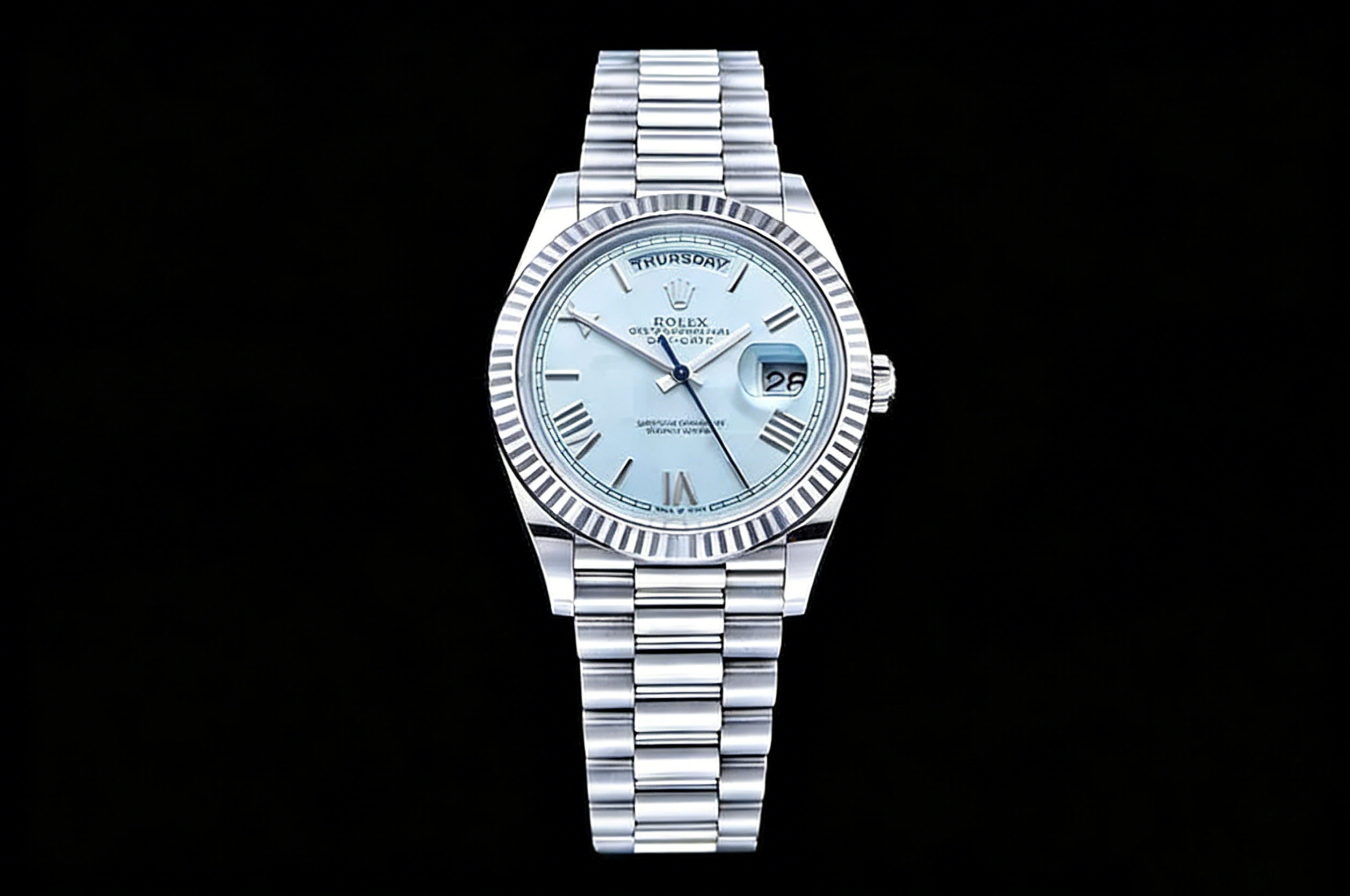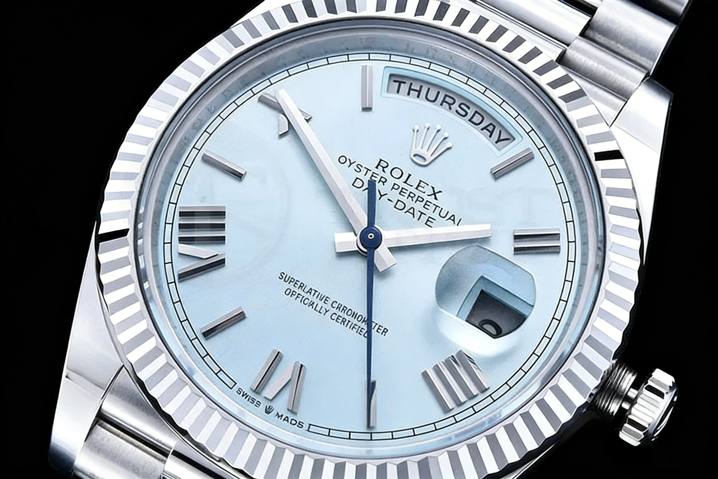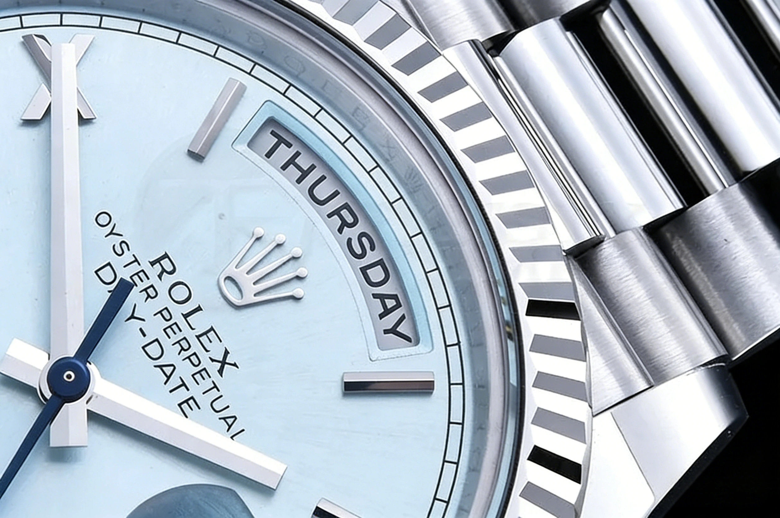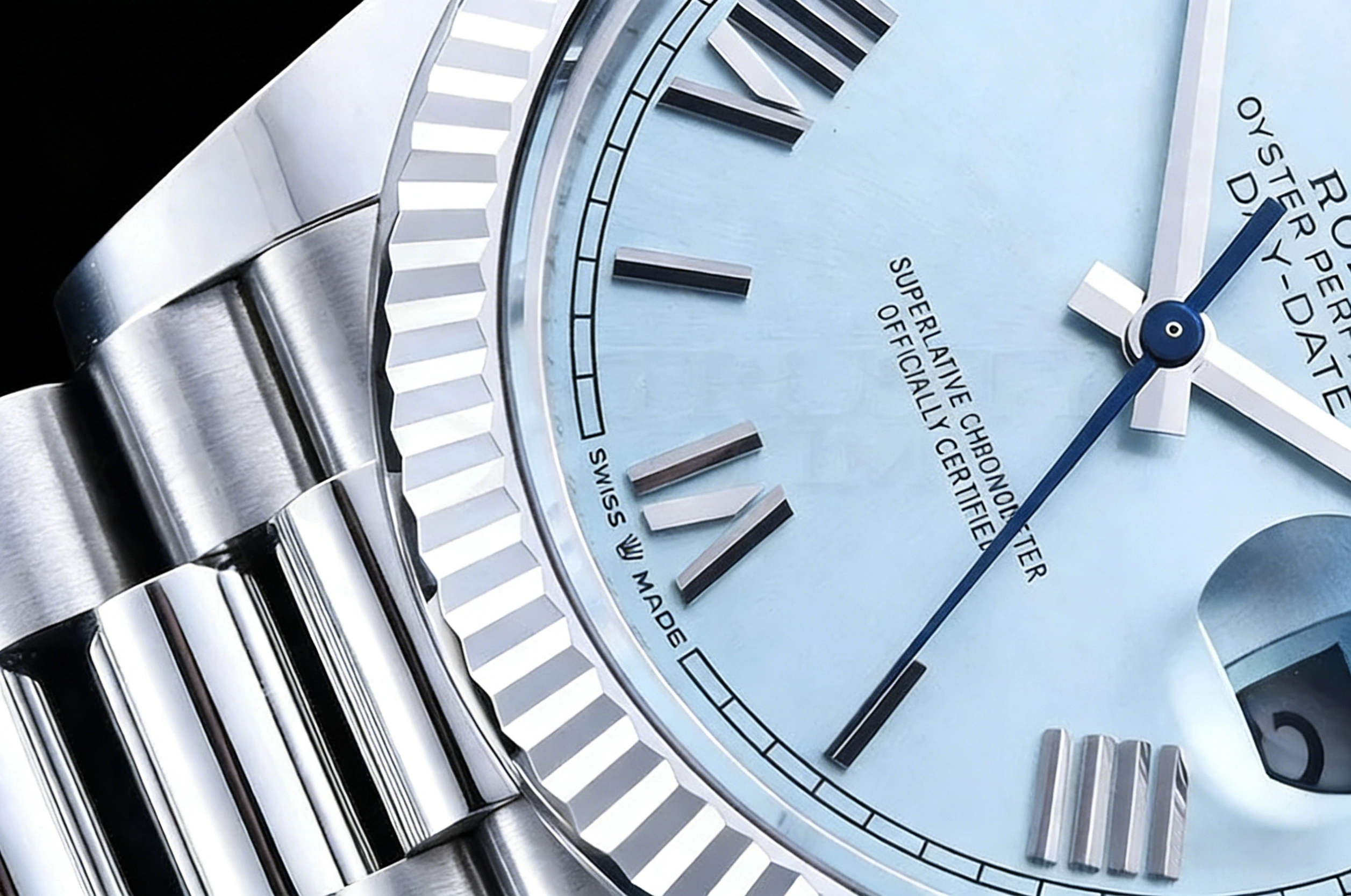 DIAL COLOR: Ice Blue Dial with Roman Markers
