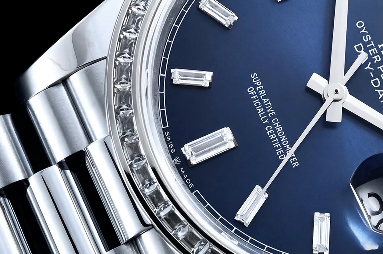 DIAL COLOR:  Blue Dial with Baguette Diamond Markers