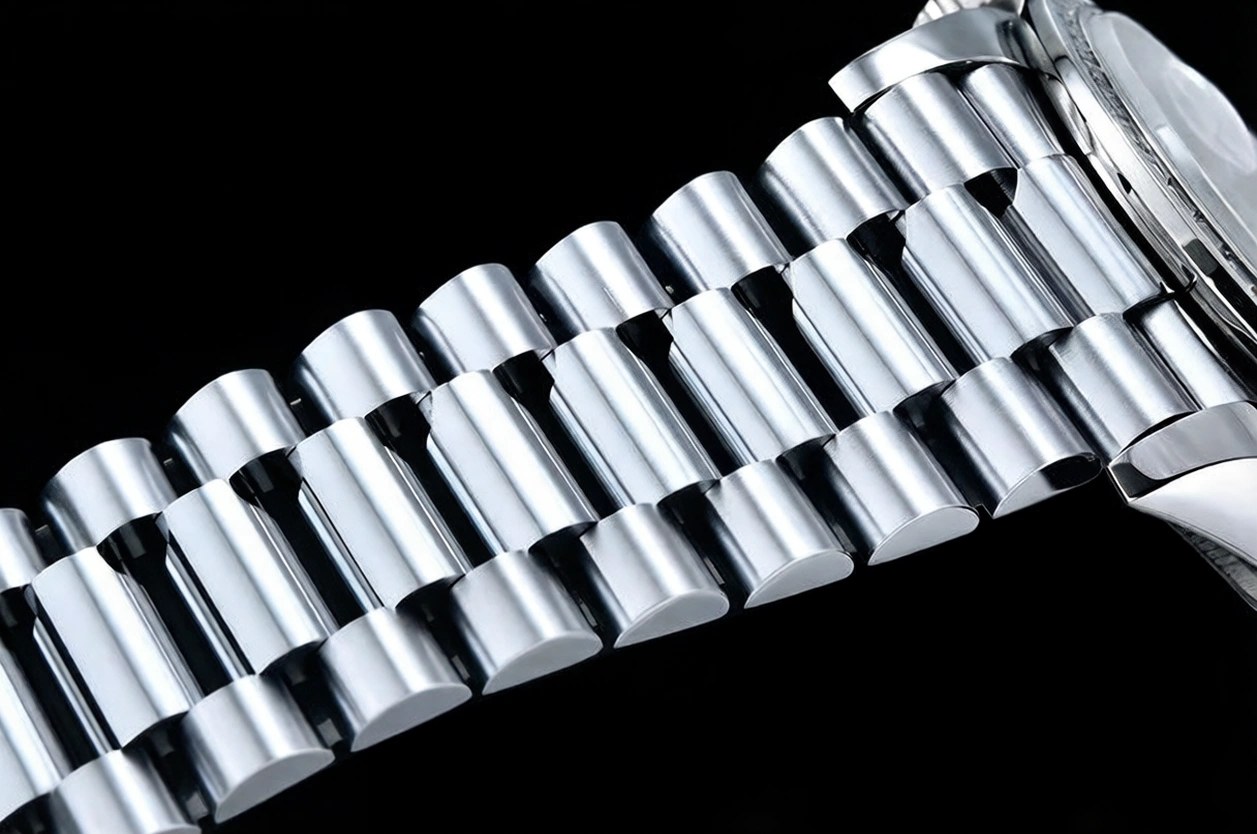 BRACELET: New Style 2 Piece End Link President Stainless Steel 904L Link Bracelet with Single Fold Deployant Clasp