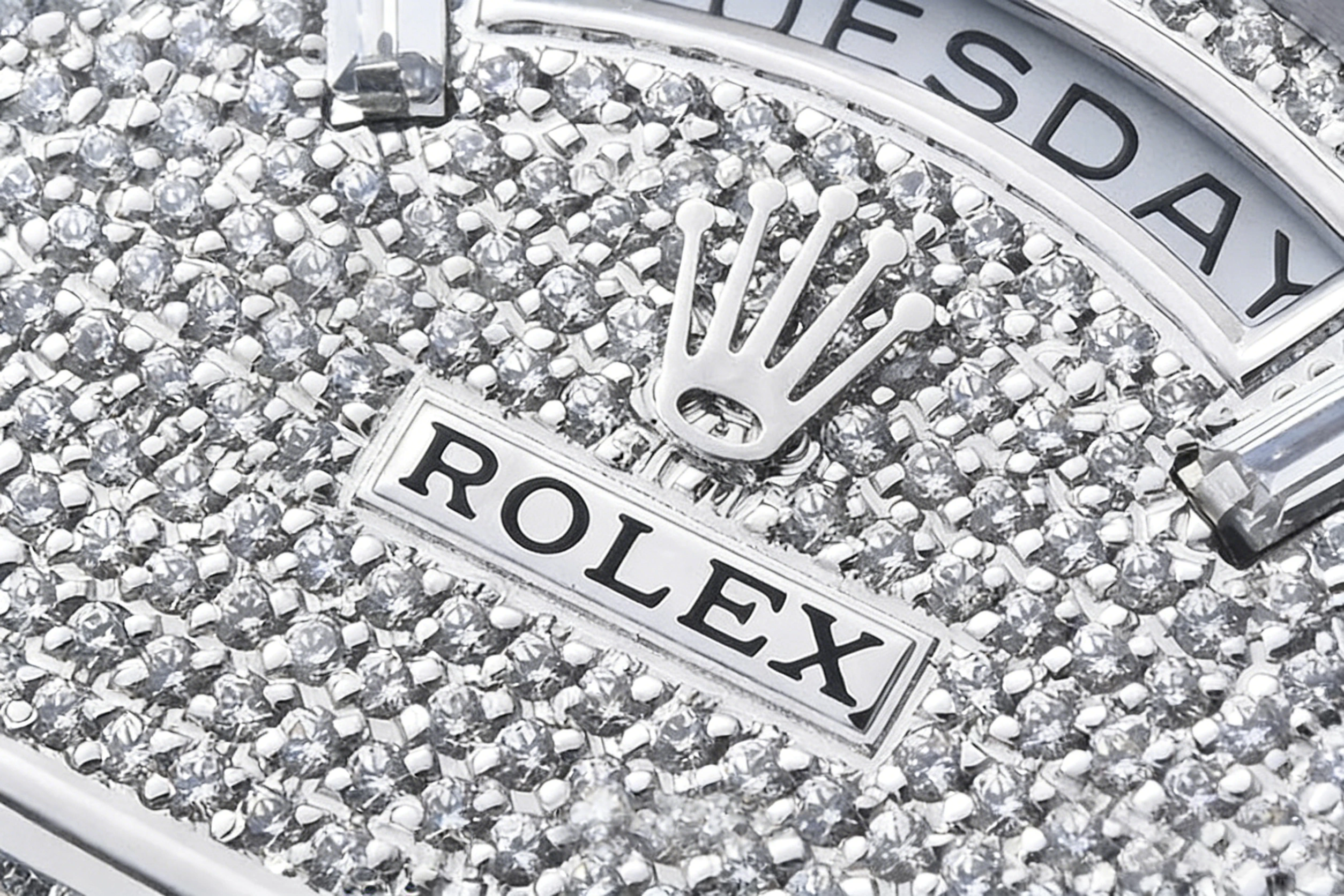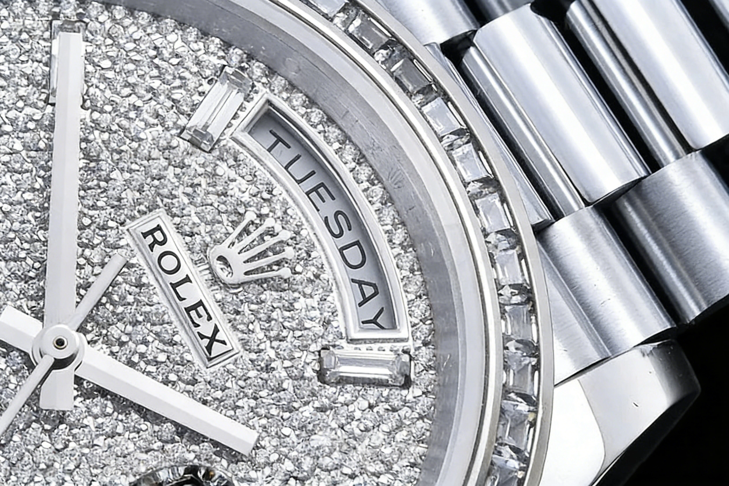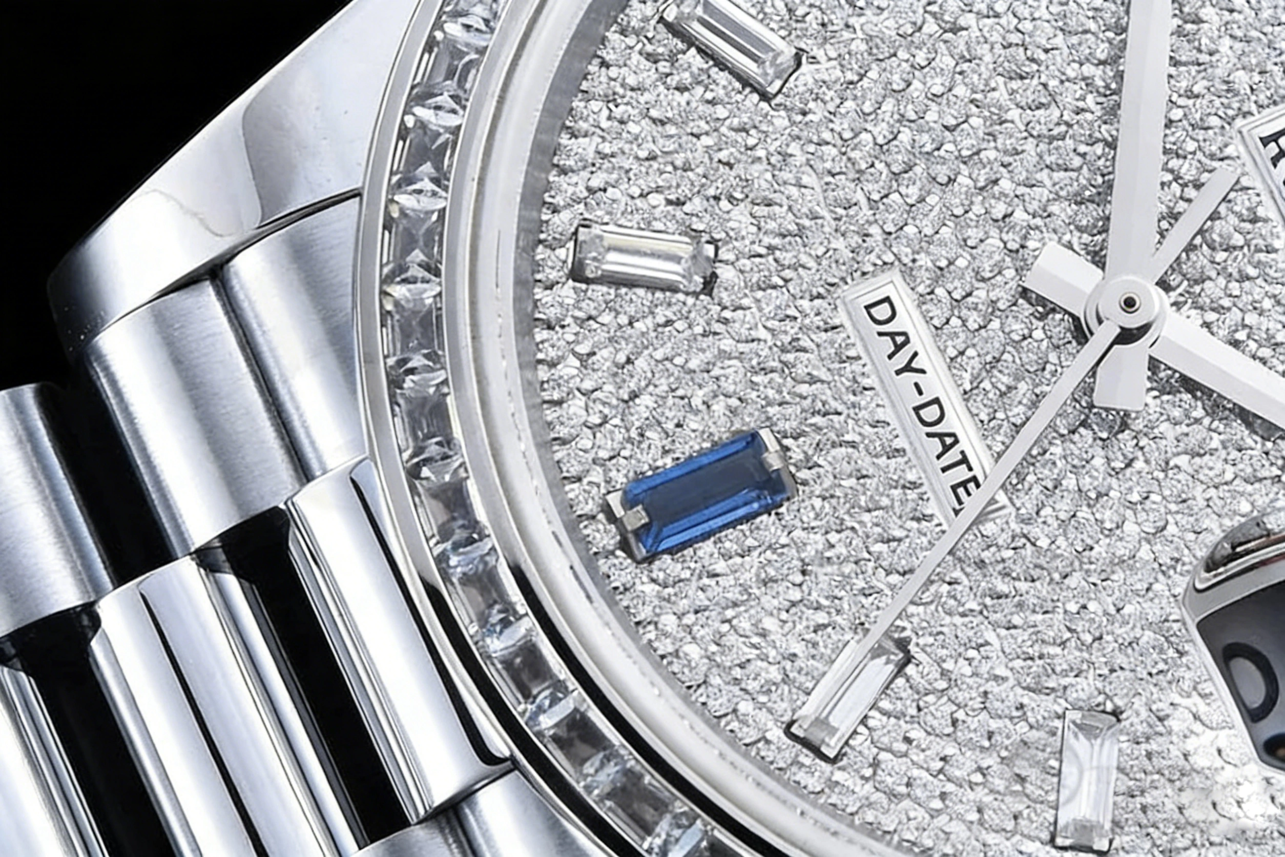 DIAL COLOR: Diamond Paved Dial with Diamond and Sapphire Markers