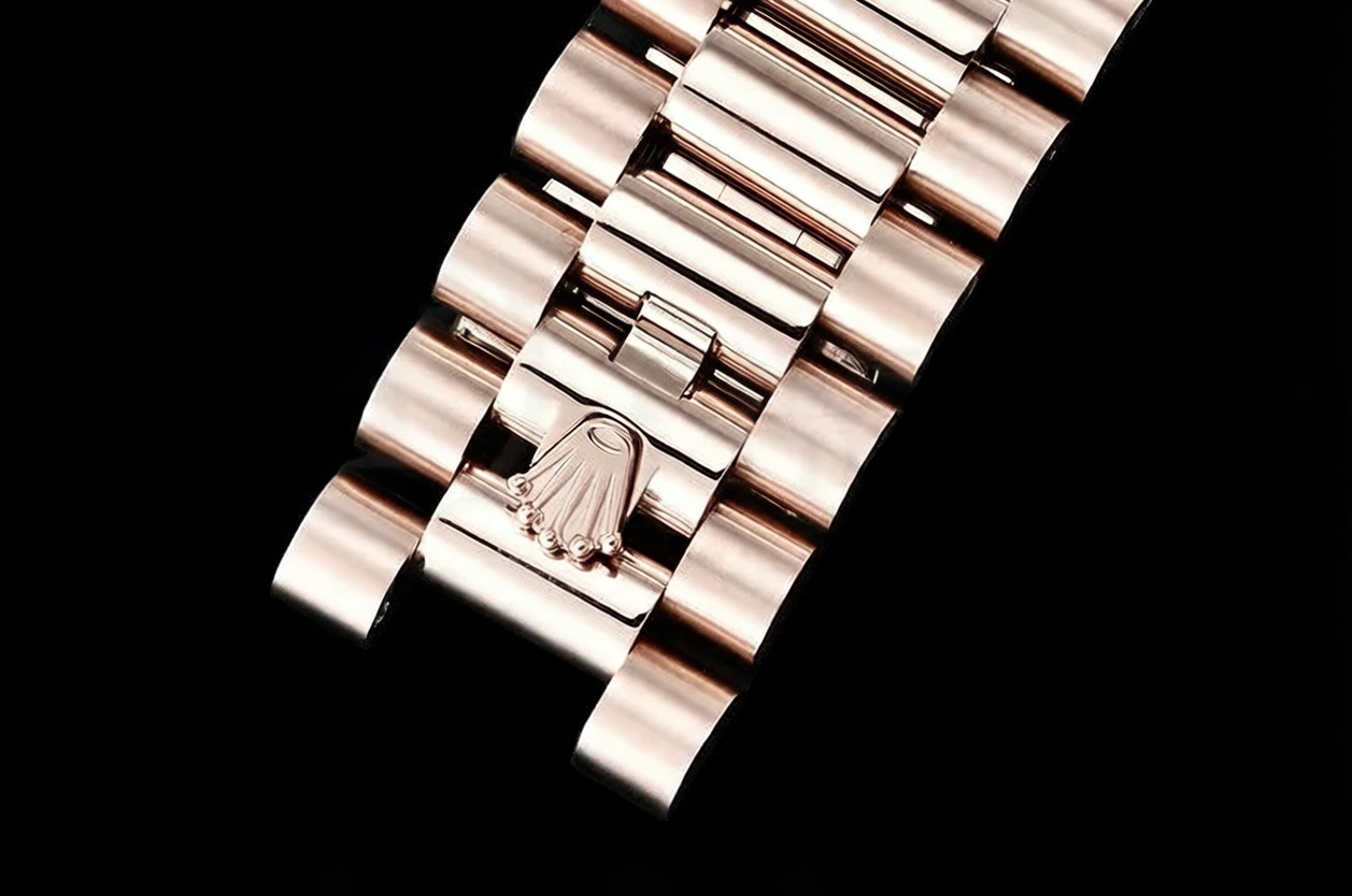 BRACELET: 18K Rose Gold Plated New Style 2 Piece End Link President Stainless Steel 904L Link Bracelet with Single Fold Deployant Clasp