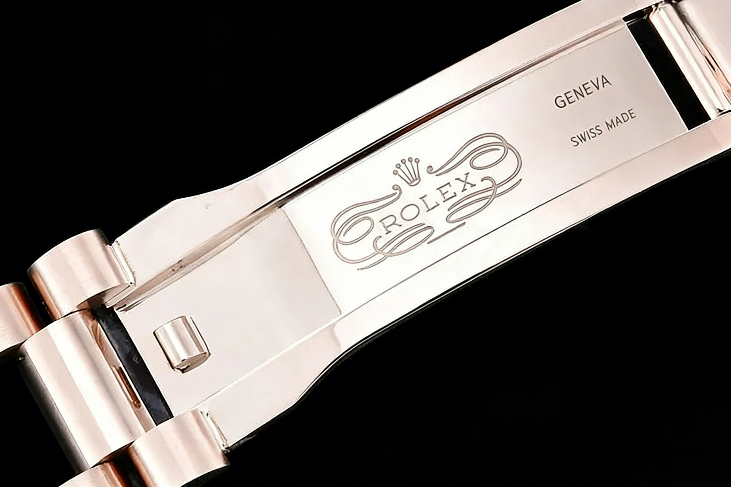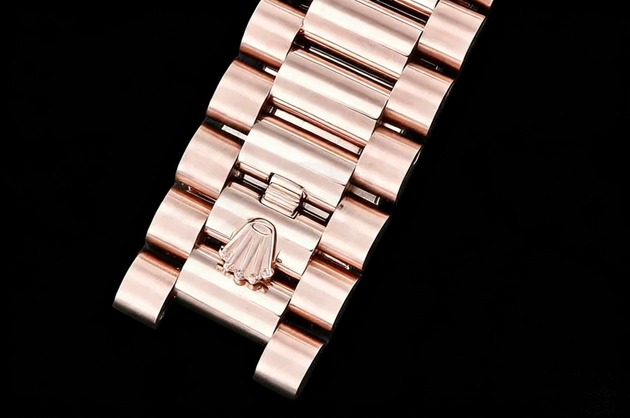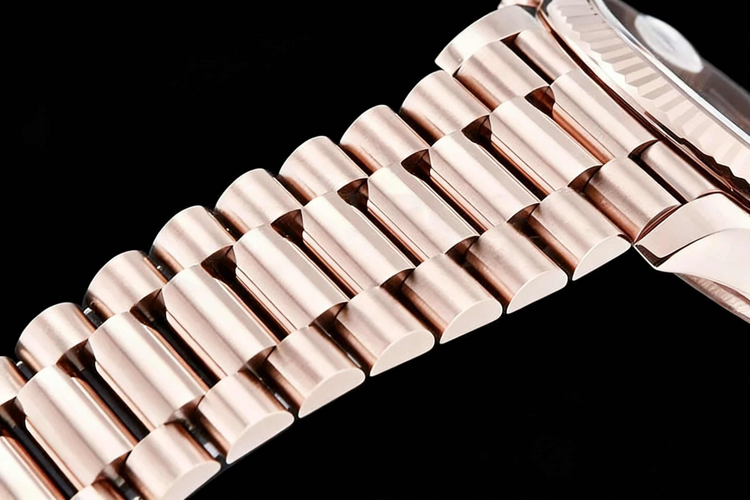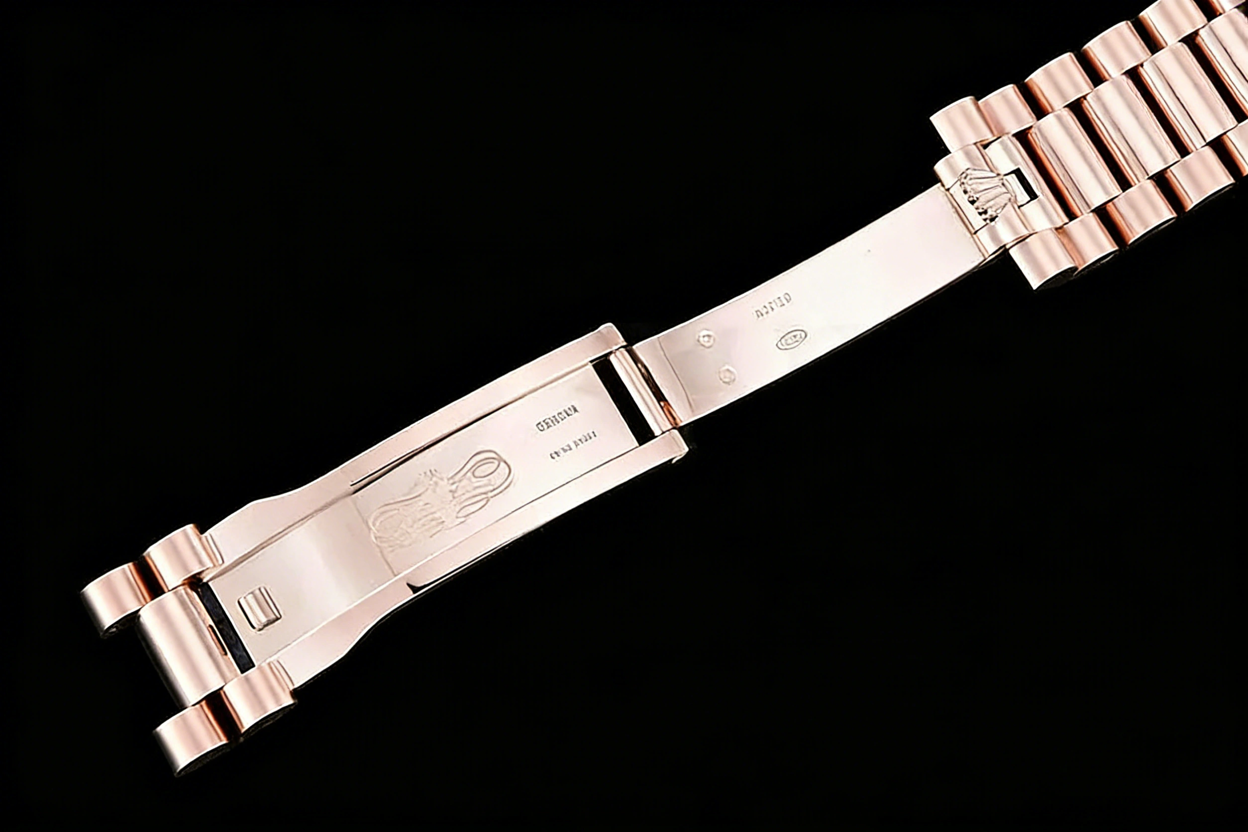 BRACELET: 18K Rose Gold Plated New Style 2 Piece End Link President Stainless Steel 904L Link Bracelet (added weight) with Single Fold Deployant Clasp