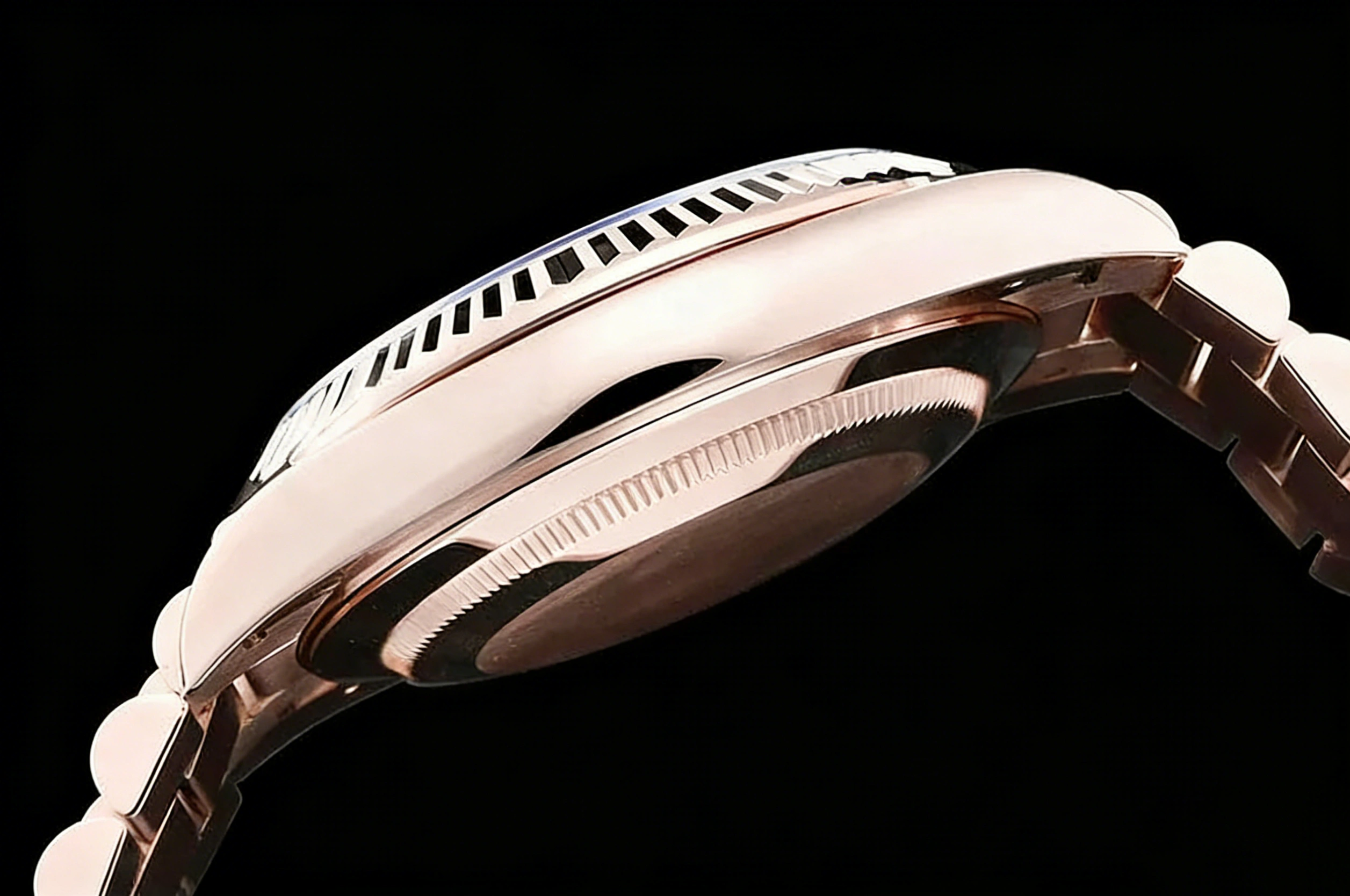 CASE MATERIAL: 18K Rose Gold Plated on High Grade Solid Stainless Steel 904L with added weight