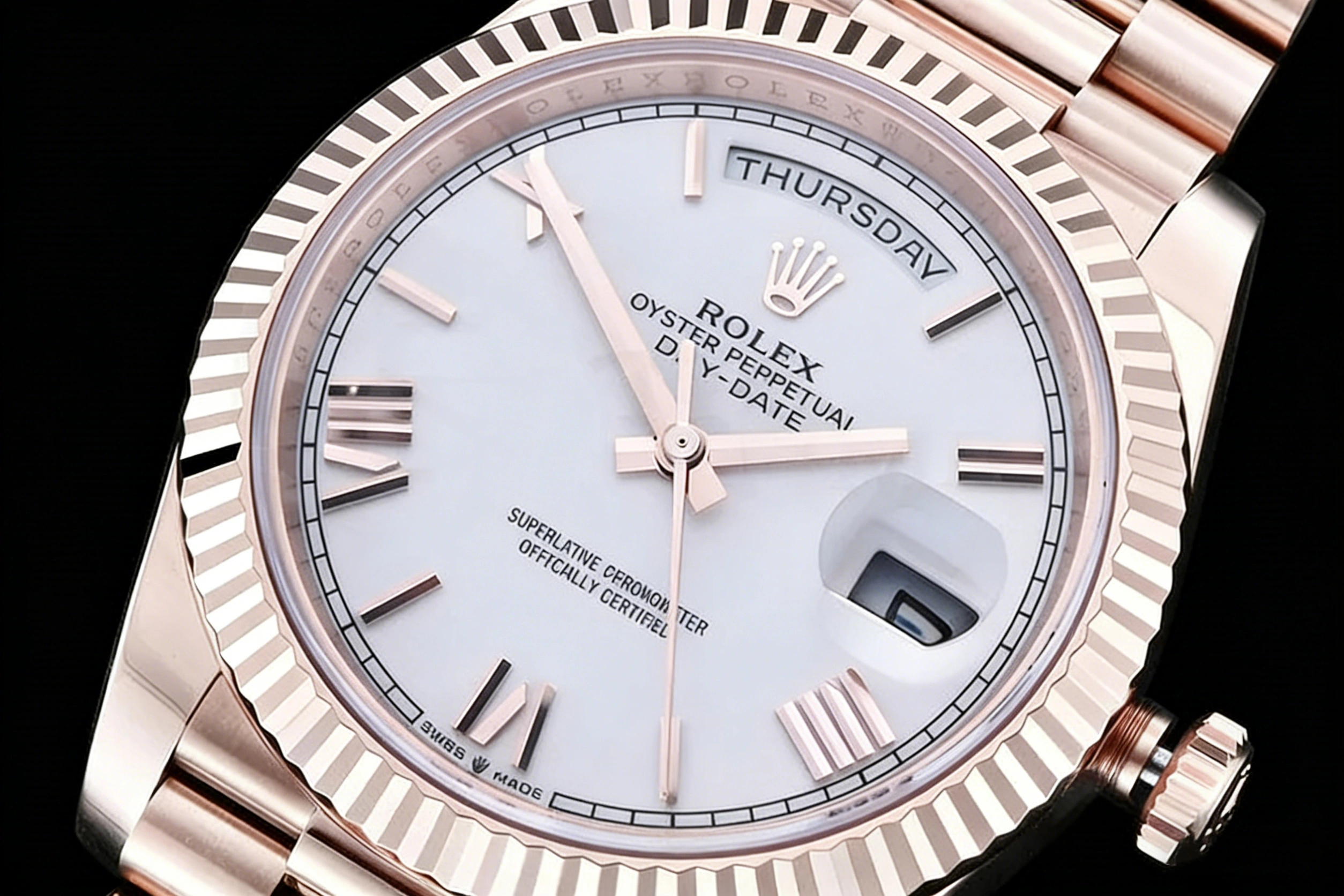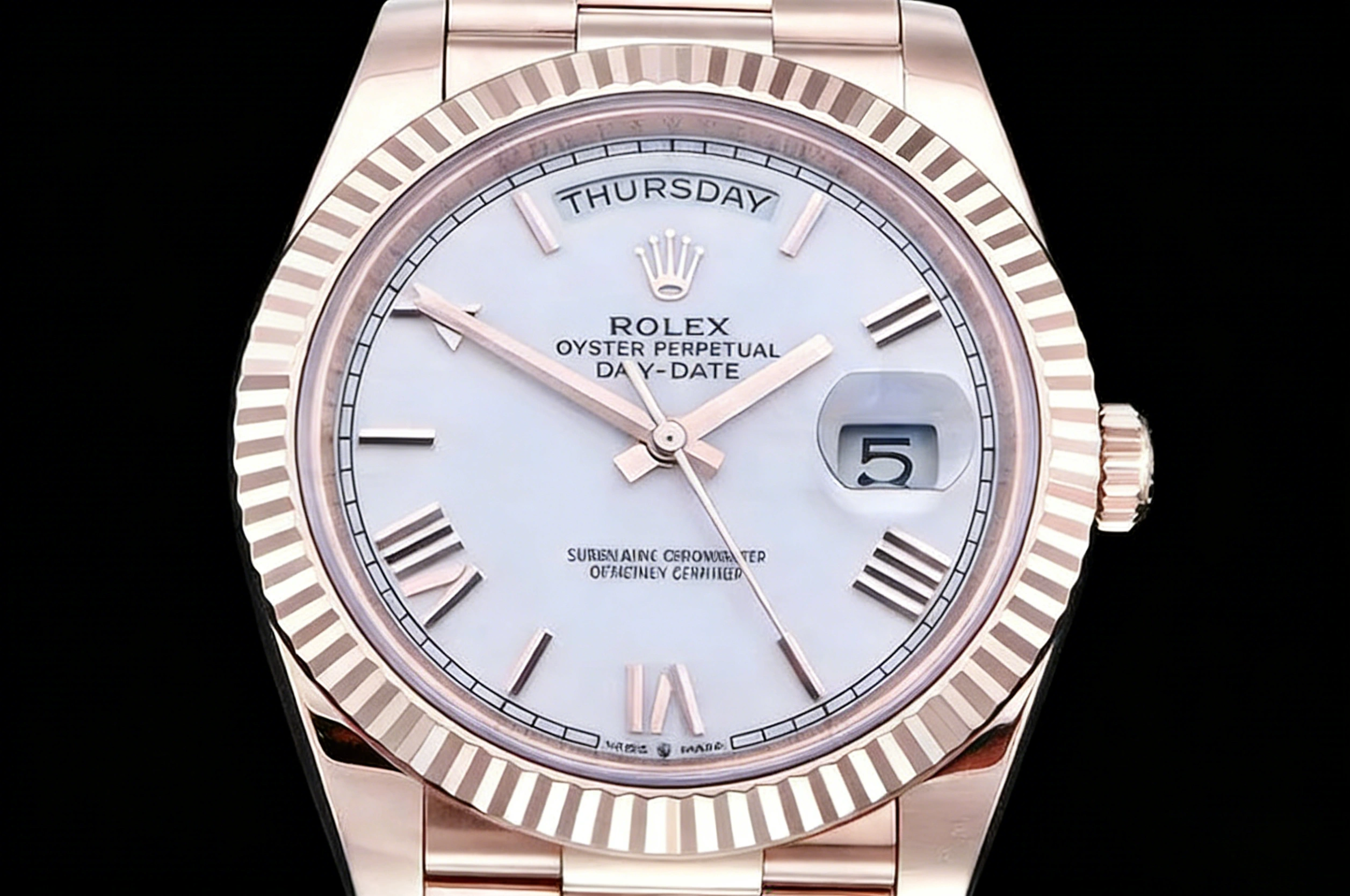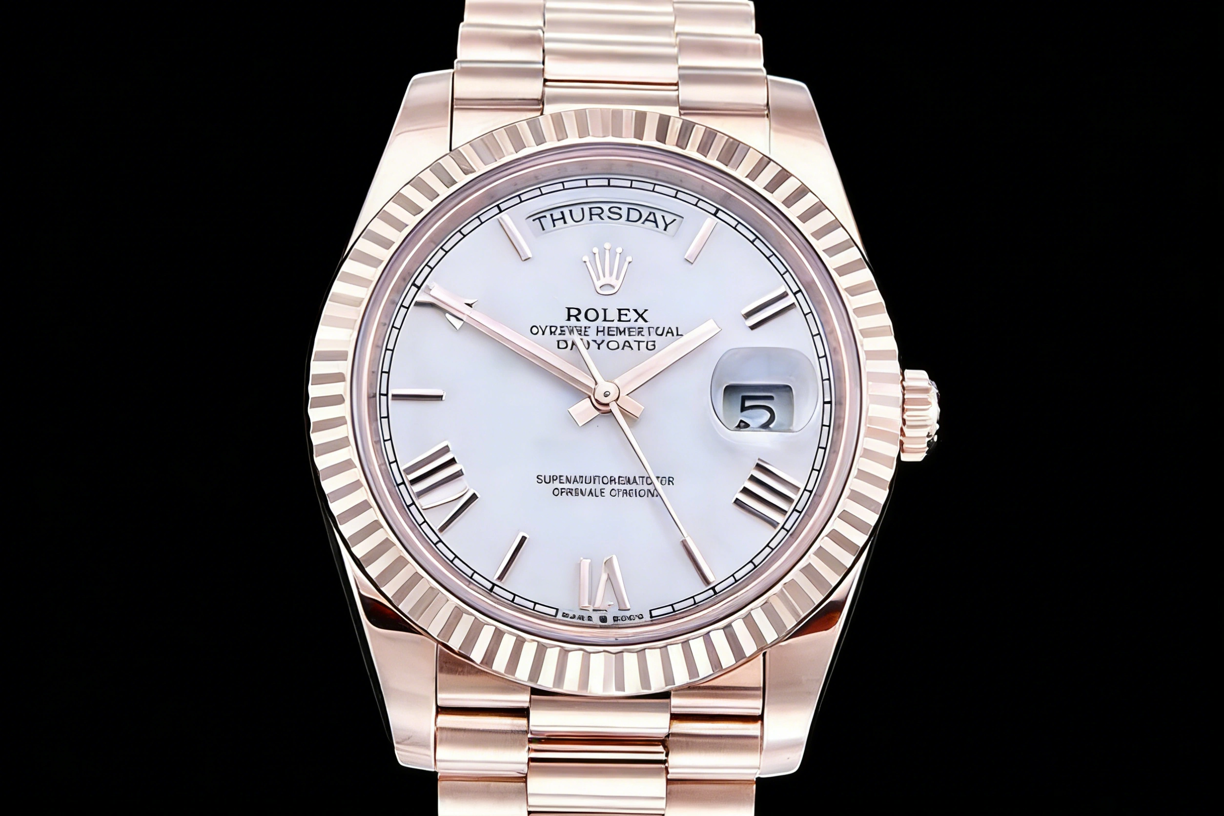 RDD0370A - DayDate 40mm 904L Flt Wt RG_RG Wht_Rm_Stk RCF VR3255