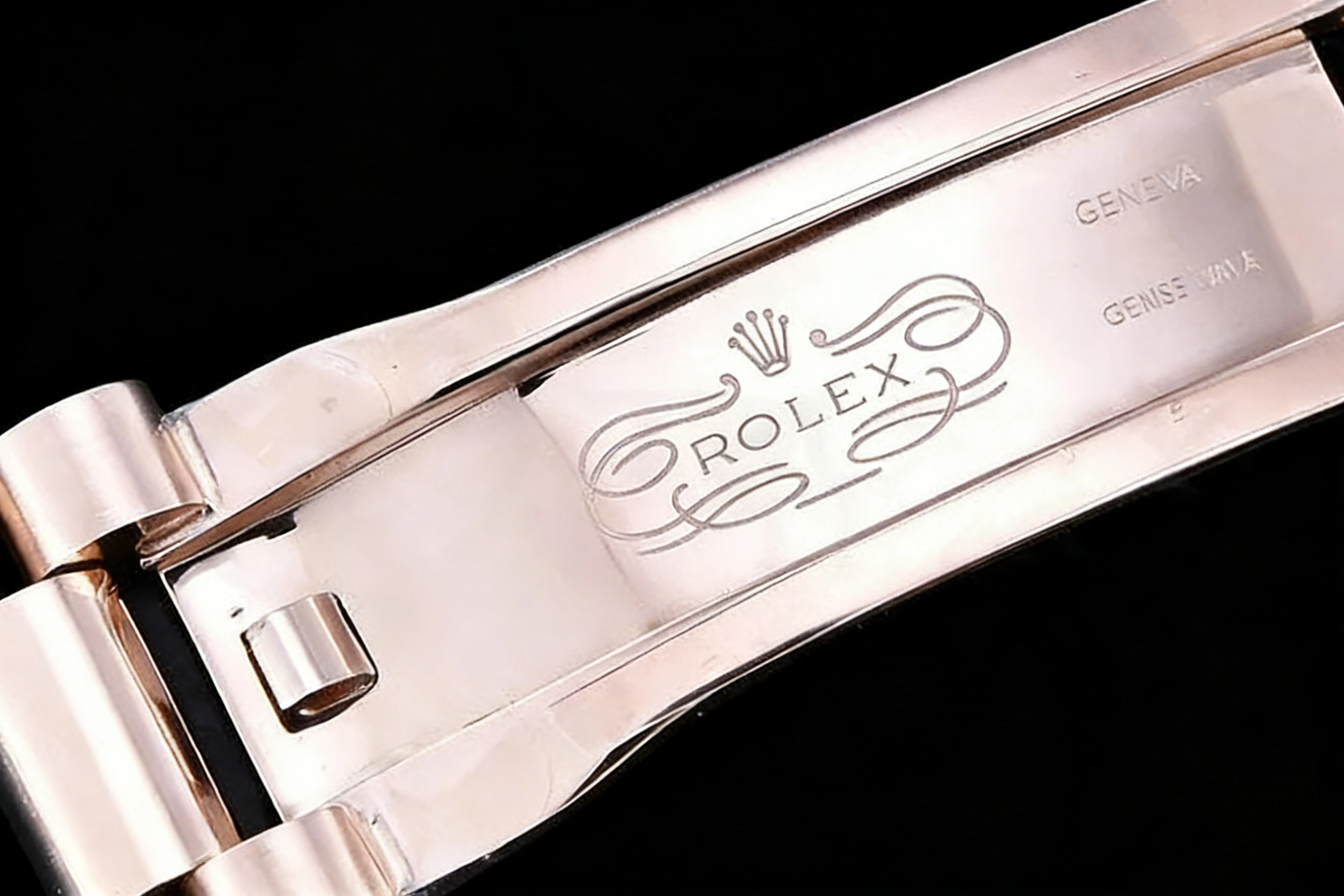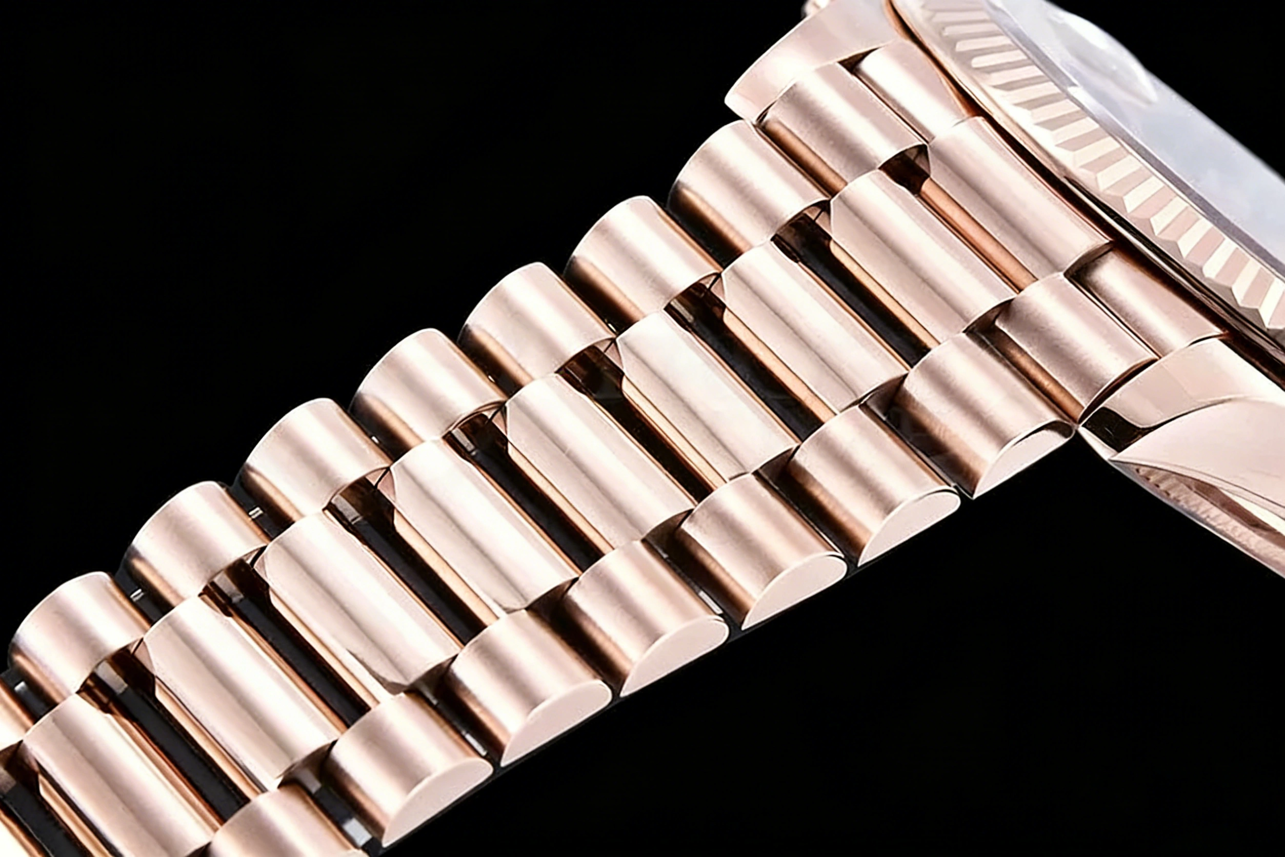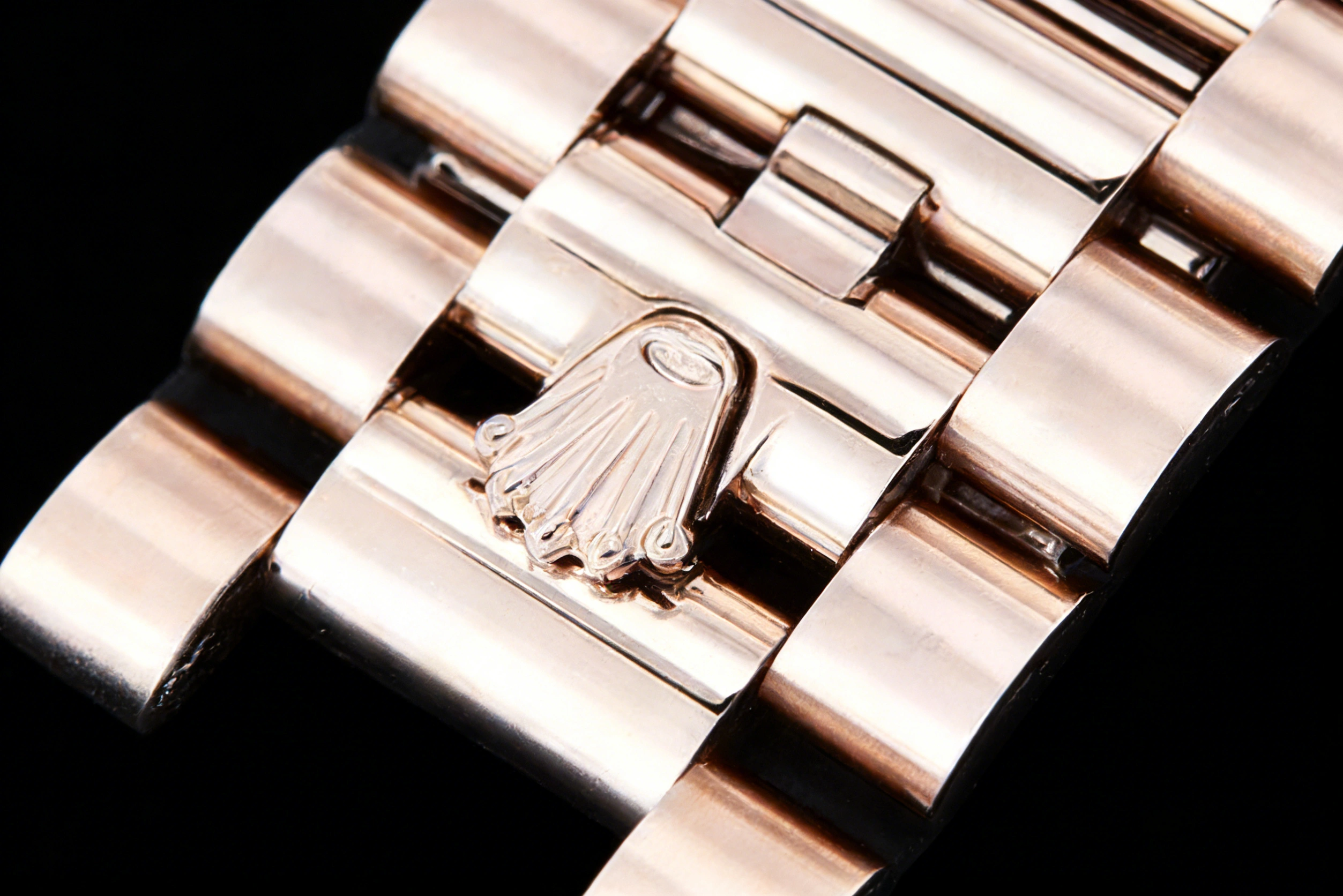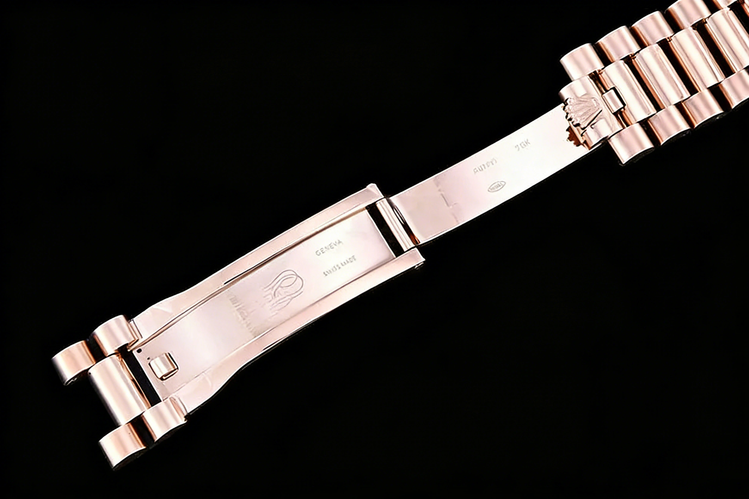 BRACELET: 18K Rose Gold Plated New Style 2 Piece End Link President Stainless Steel 904L Link Bracelet (added weight) with Single Fold Deployant Clasp