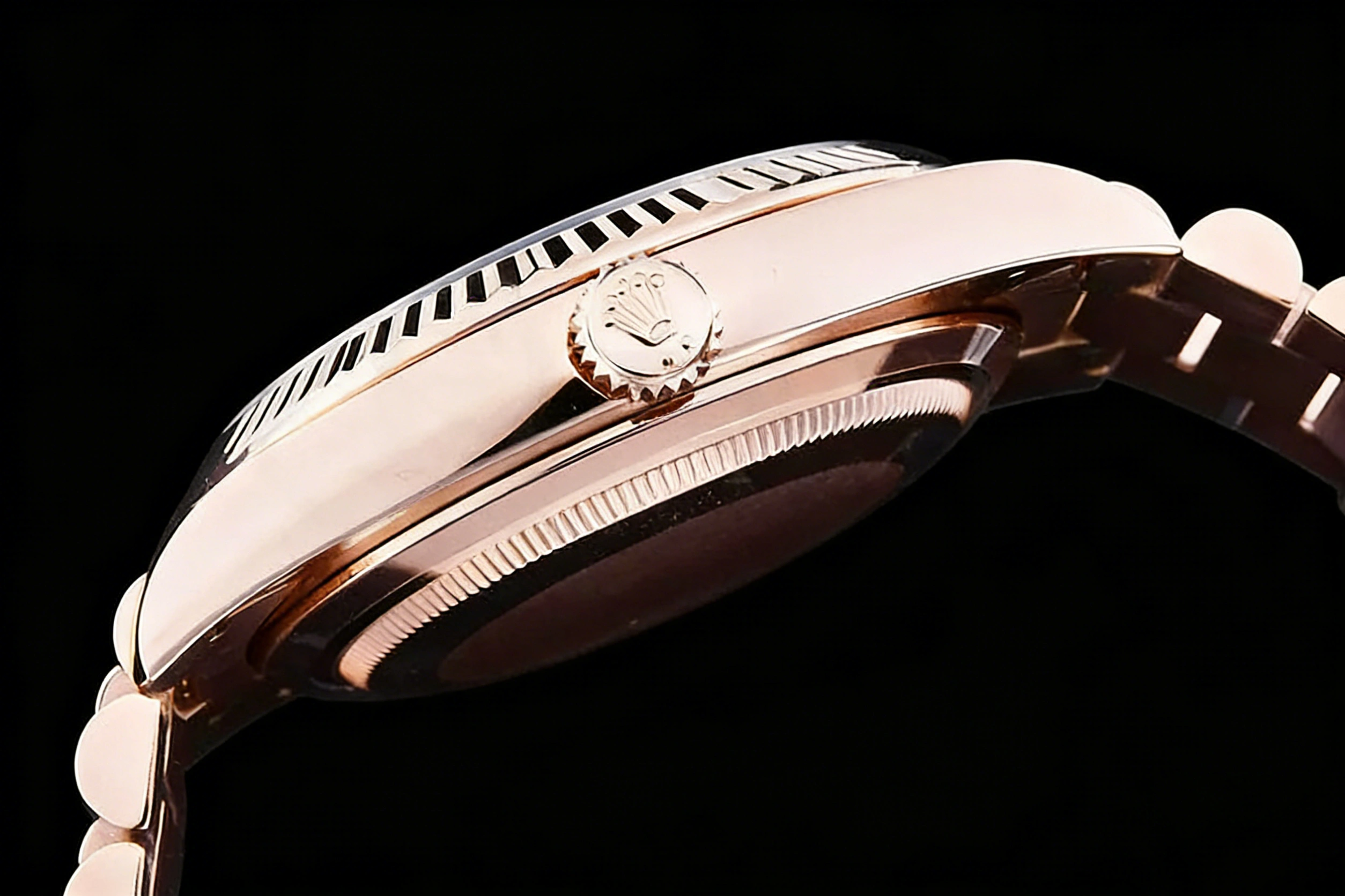 CASE MATERIAL: 18K Rose Gold Plated High Grade Solid Stainless Steel 904L with added weight