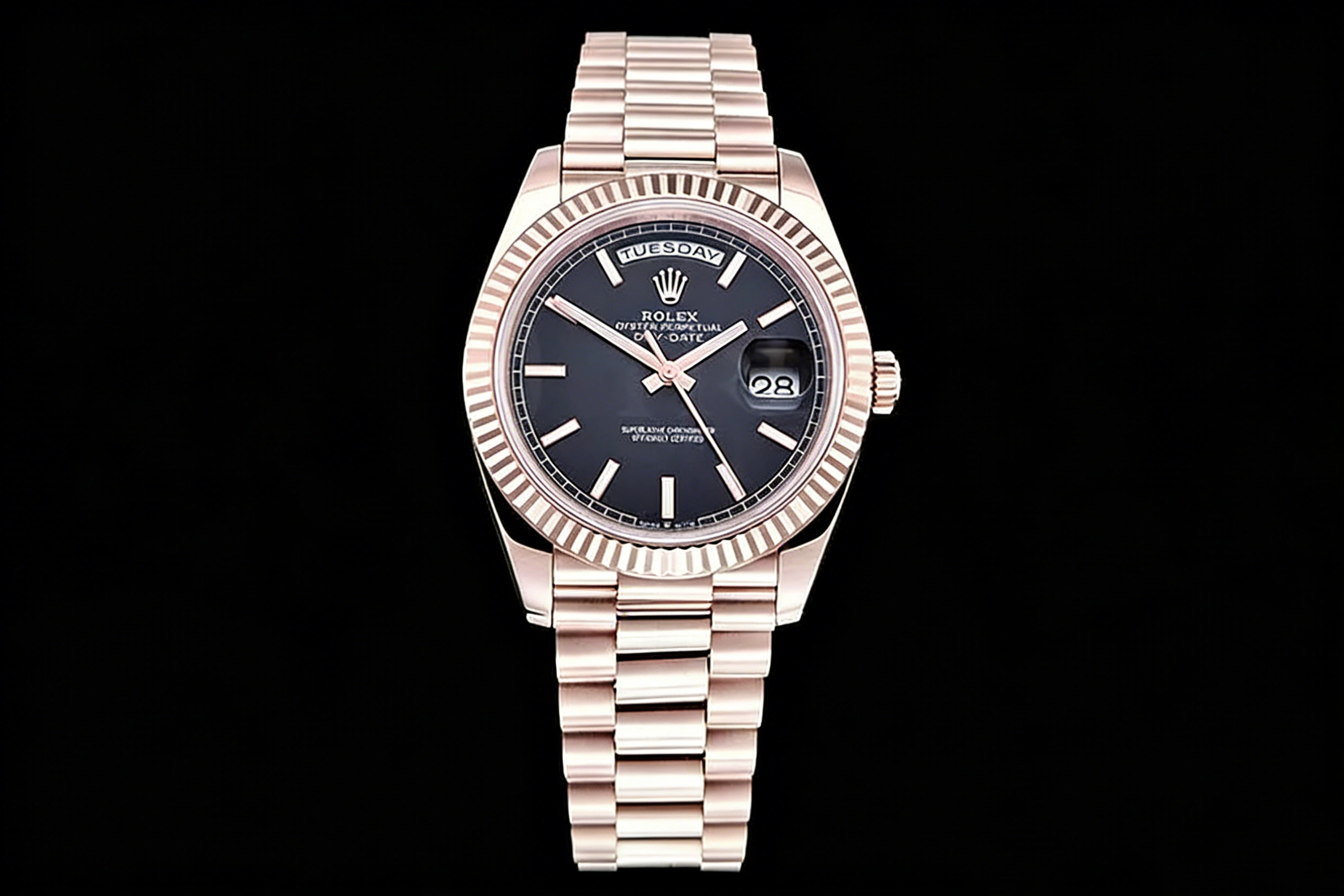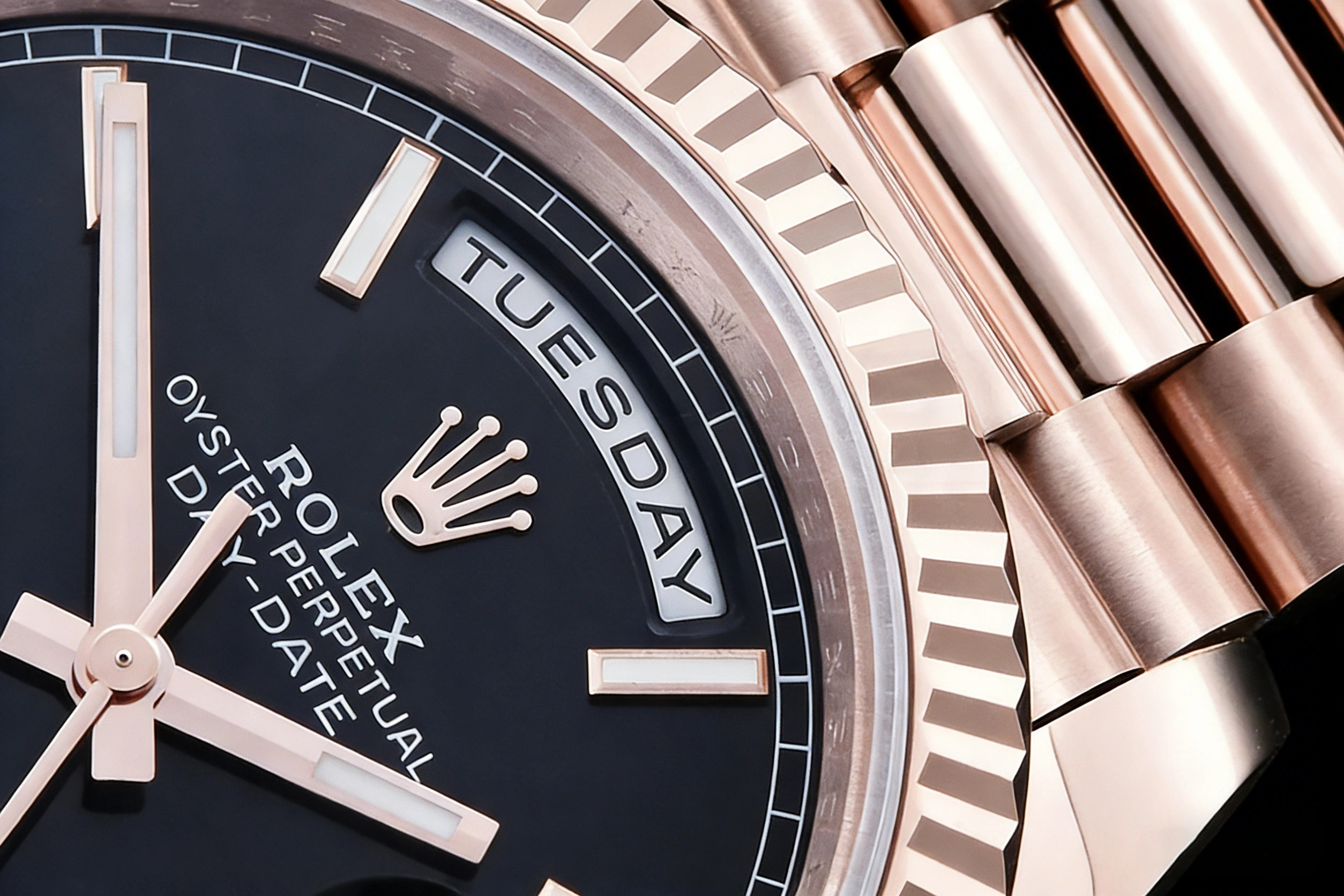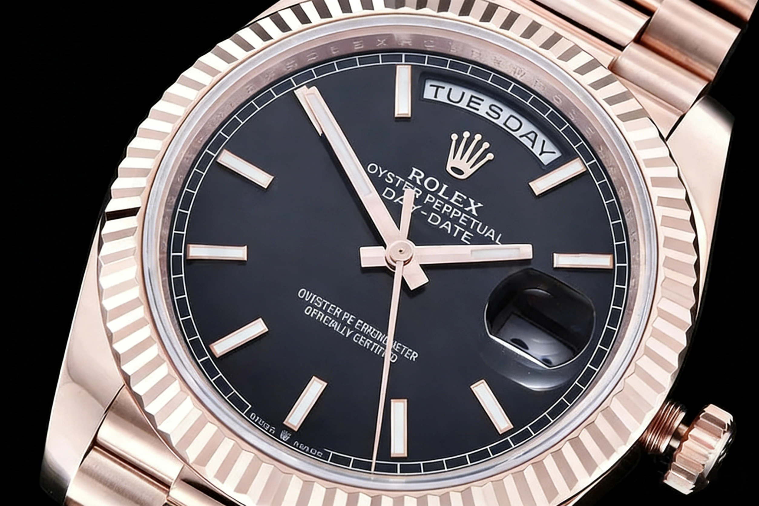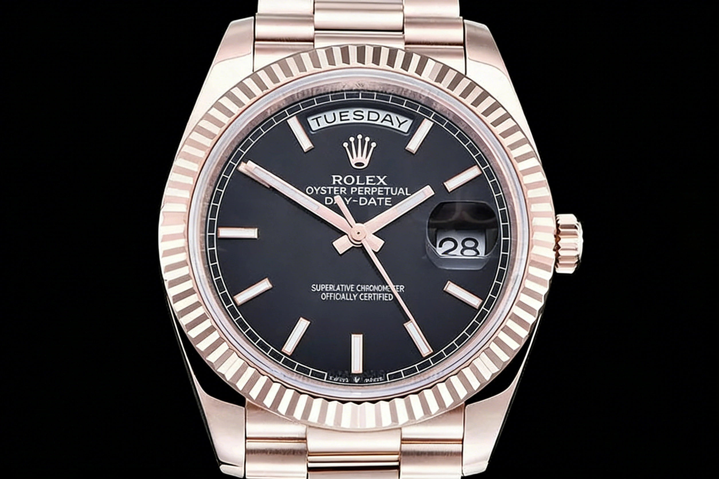 RDD0372A - DayDate 40mm Flt Wt RG_RG Blk_Stk QF V8 SH3255