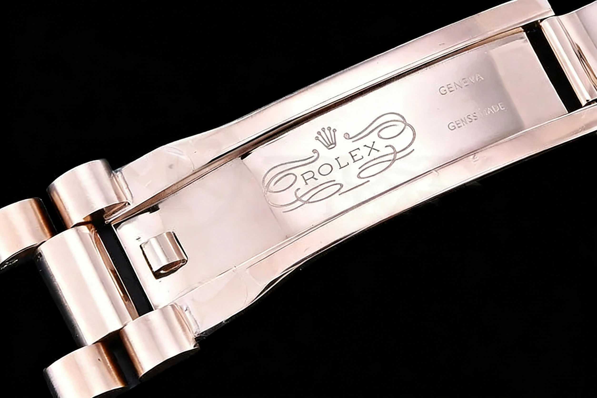 BRACELET: 18K Rose Gold Plated New Style 2 Piece End Link President Stainless Steel 904L Link Bracelet (added weight) with Single Fold Deployant Clasp