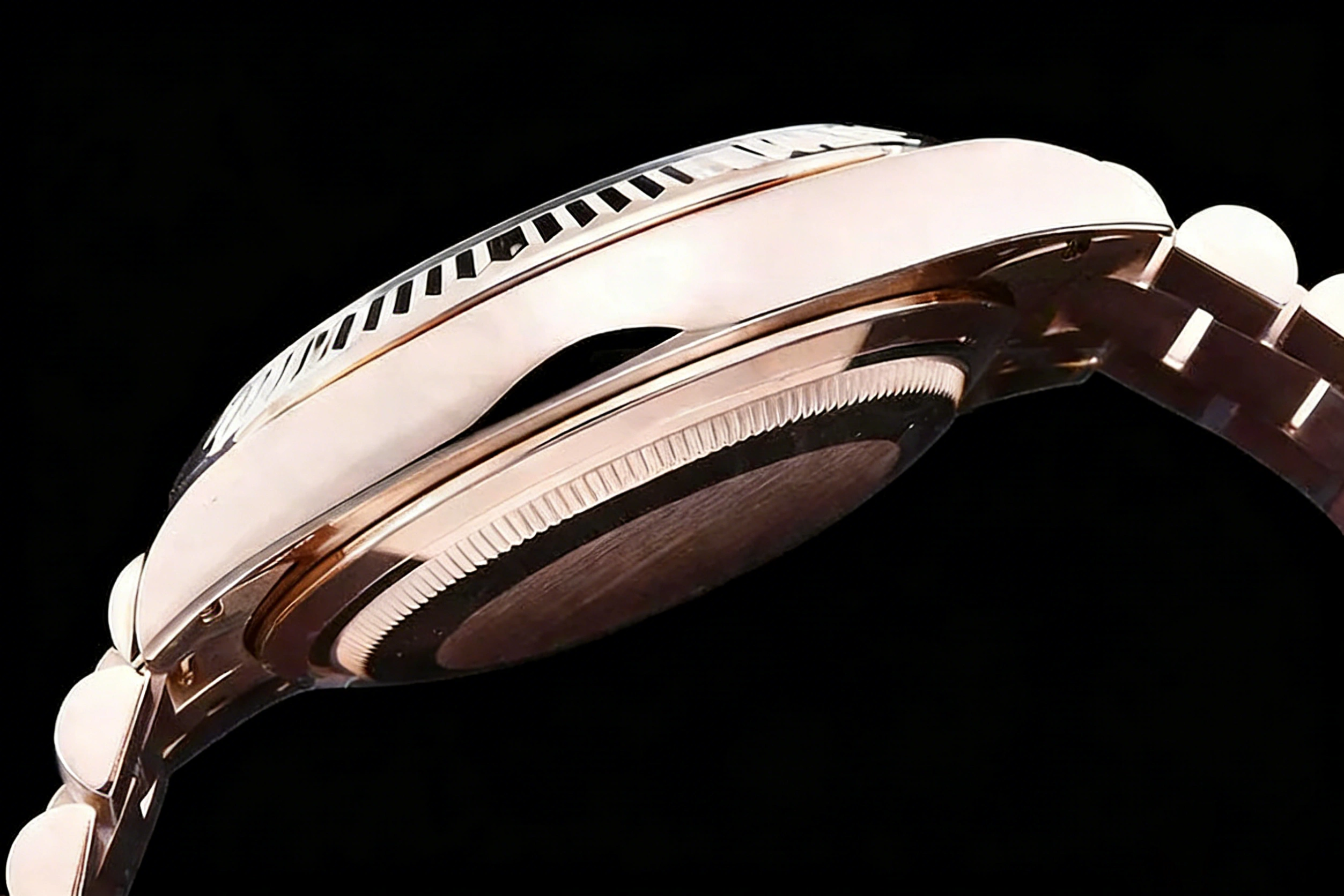 CASE MATERIAL: 18K Rose Gold Plated High Grade Solid Stainless Steel 904L with added weight