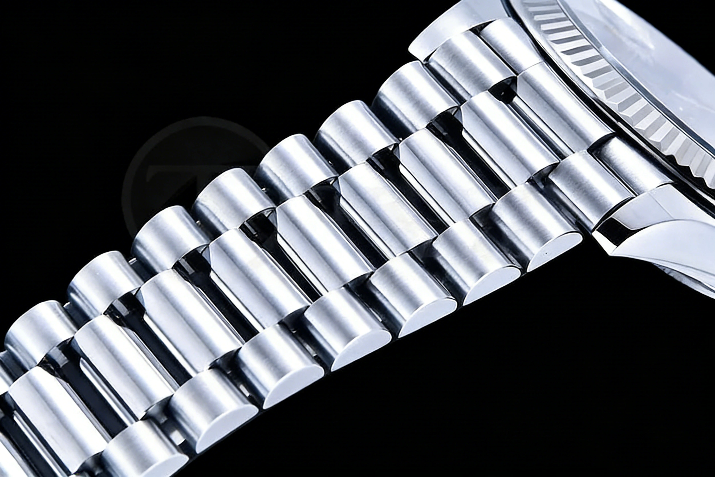 BRACELET: 18K White Gold Plated New Style 2 Piece End Link President Stainless Steel 904L Link Bracelet (added weight) with Single Fold Deployant Clasp