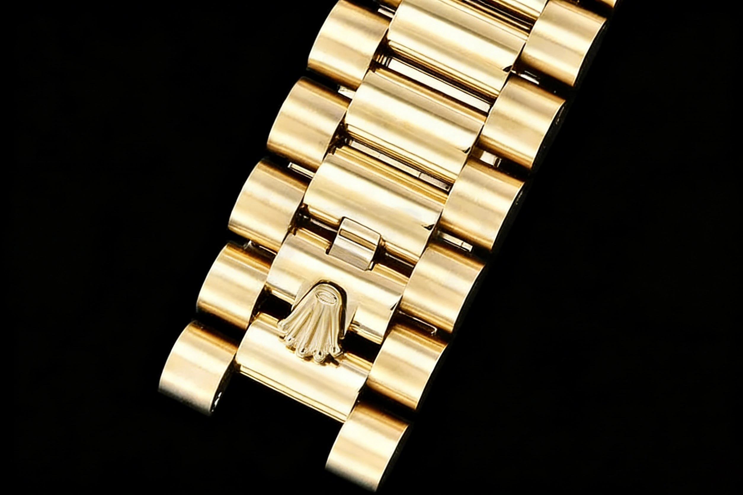 BRACELET: 18K Yellow Gold Plated New Style 2 Piece End Link President Stainless Steel 904L Link Bracelet (added weight) with Single Fold Deployant Clasp