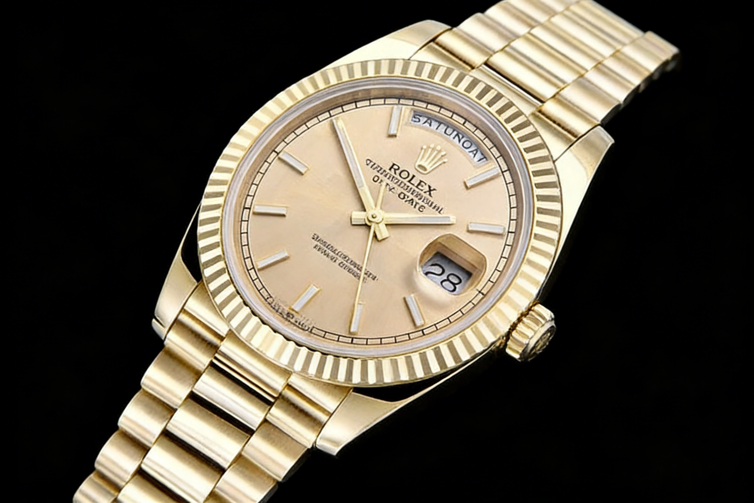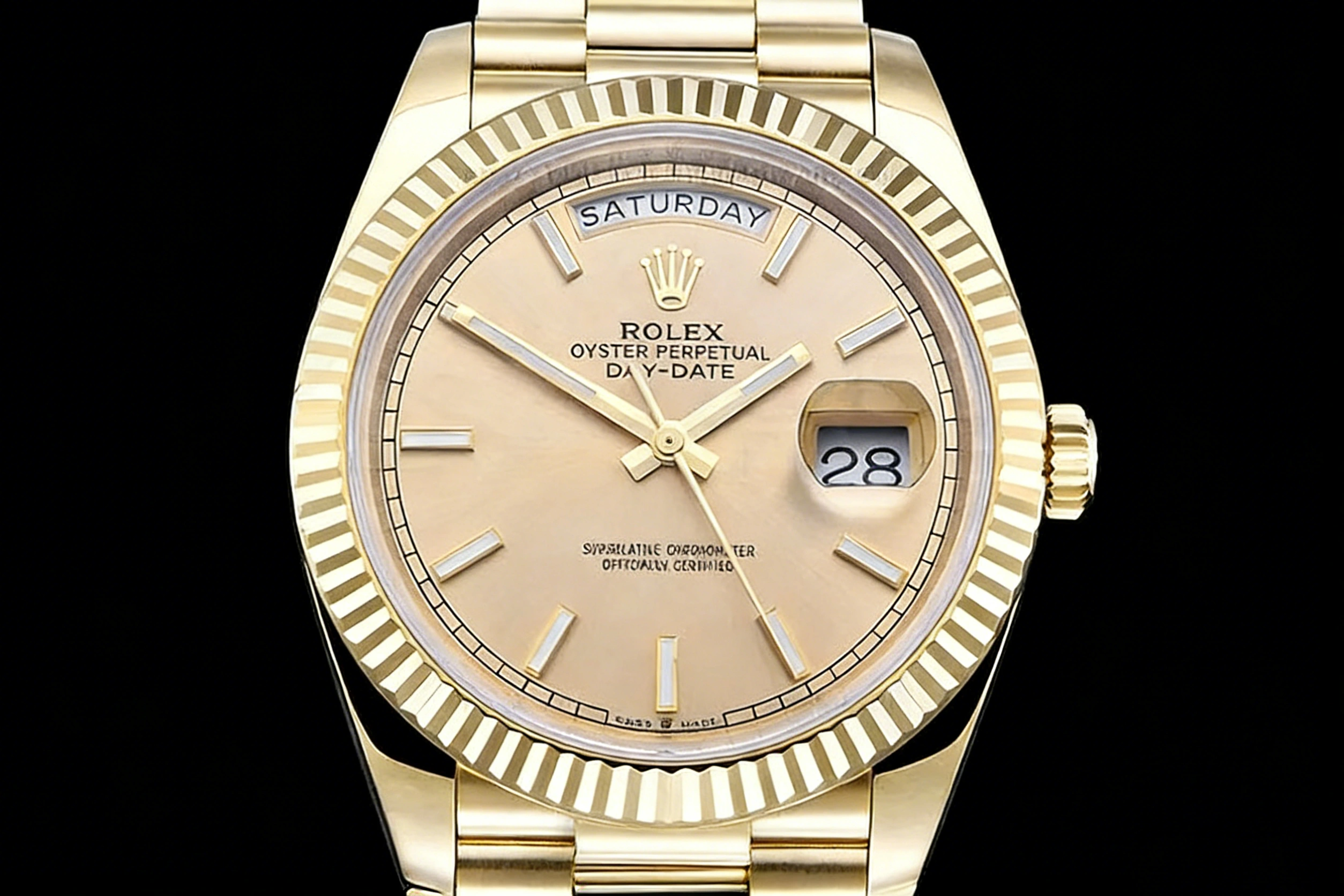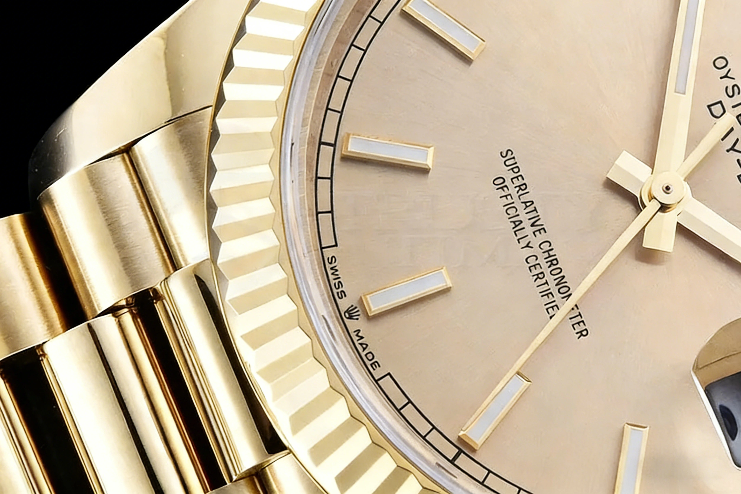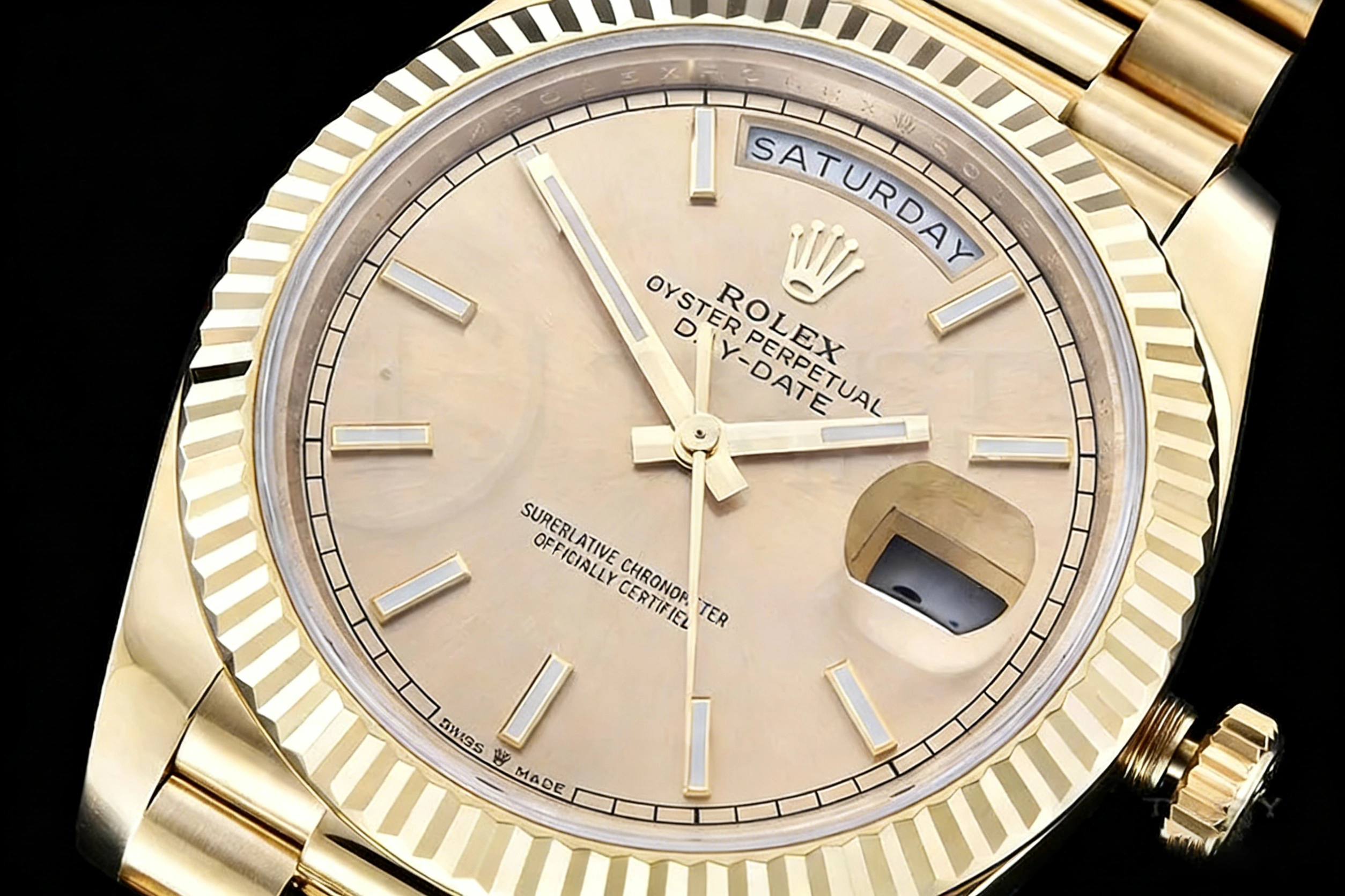 DIAL COLOR: Yellow Gold Dial with Stick Markers
