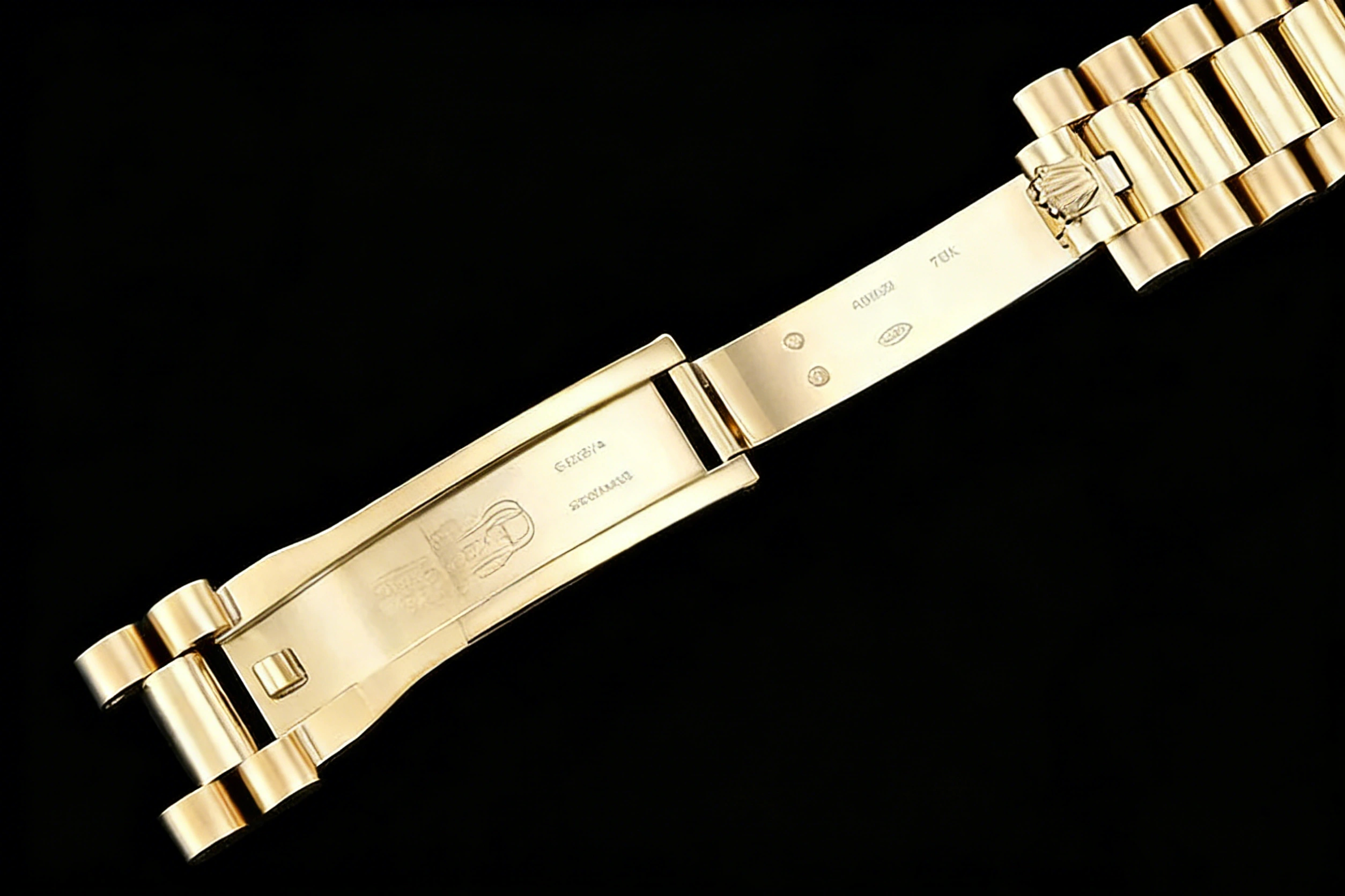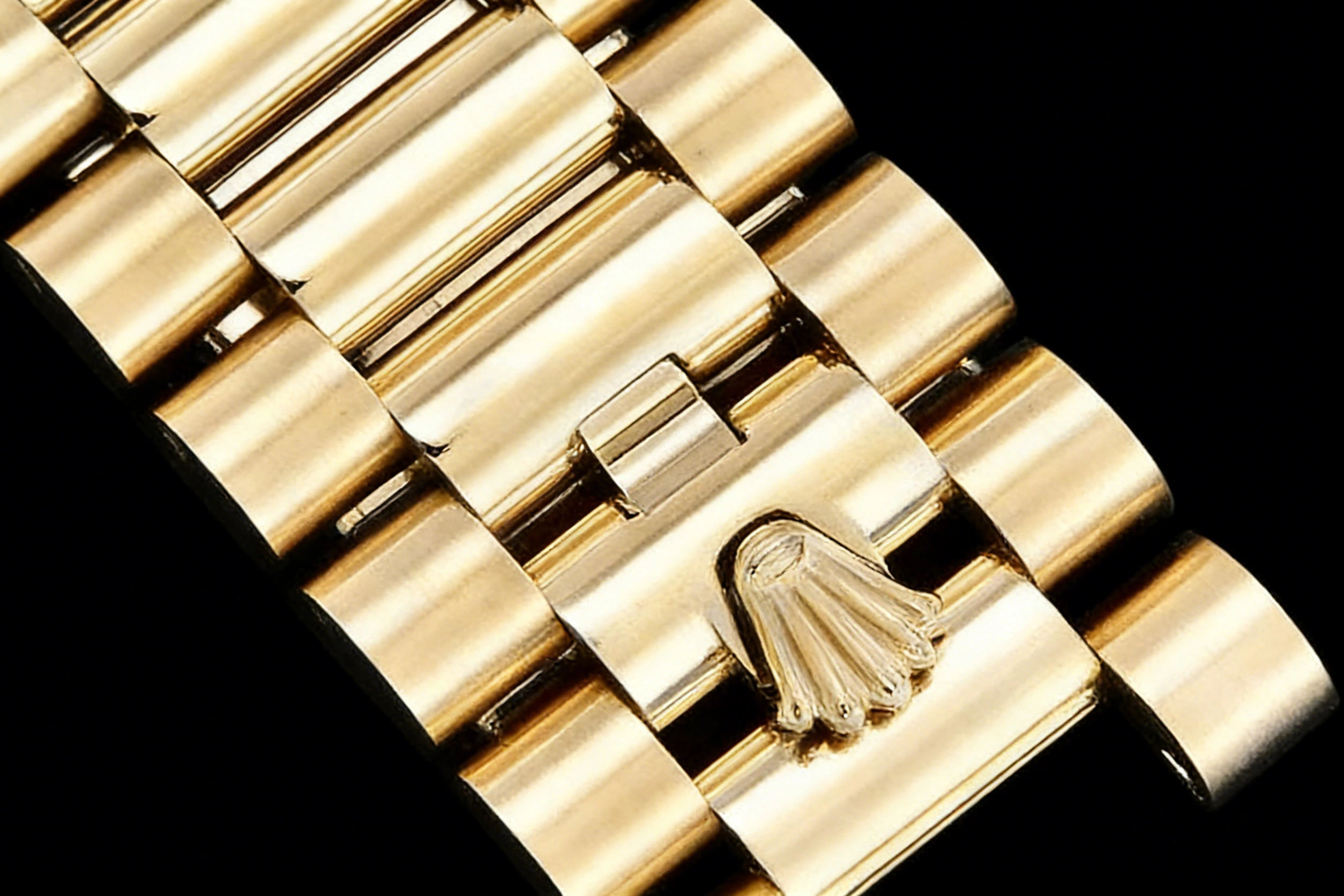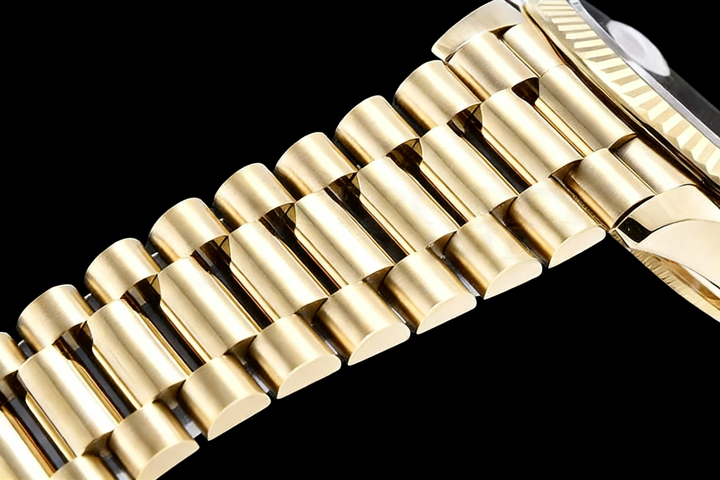 BRACELET: 18K Yellow Gold Plated New Style 2 Piece End Link President Stainless Steel 904L Link Bracelet (added weight) with Single Fold Deployant Clasp