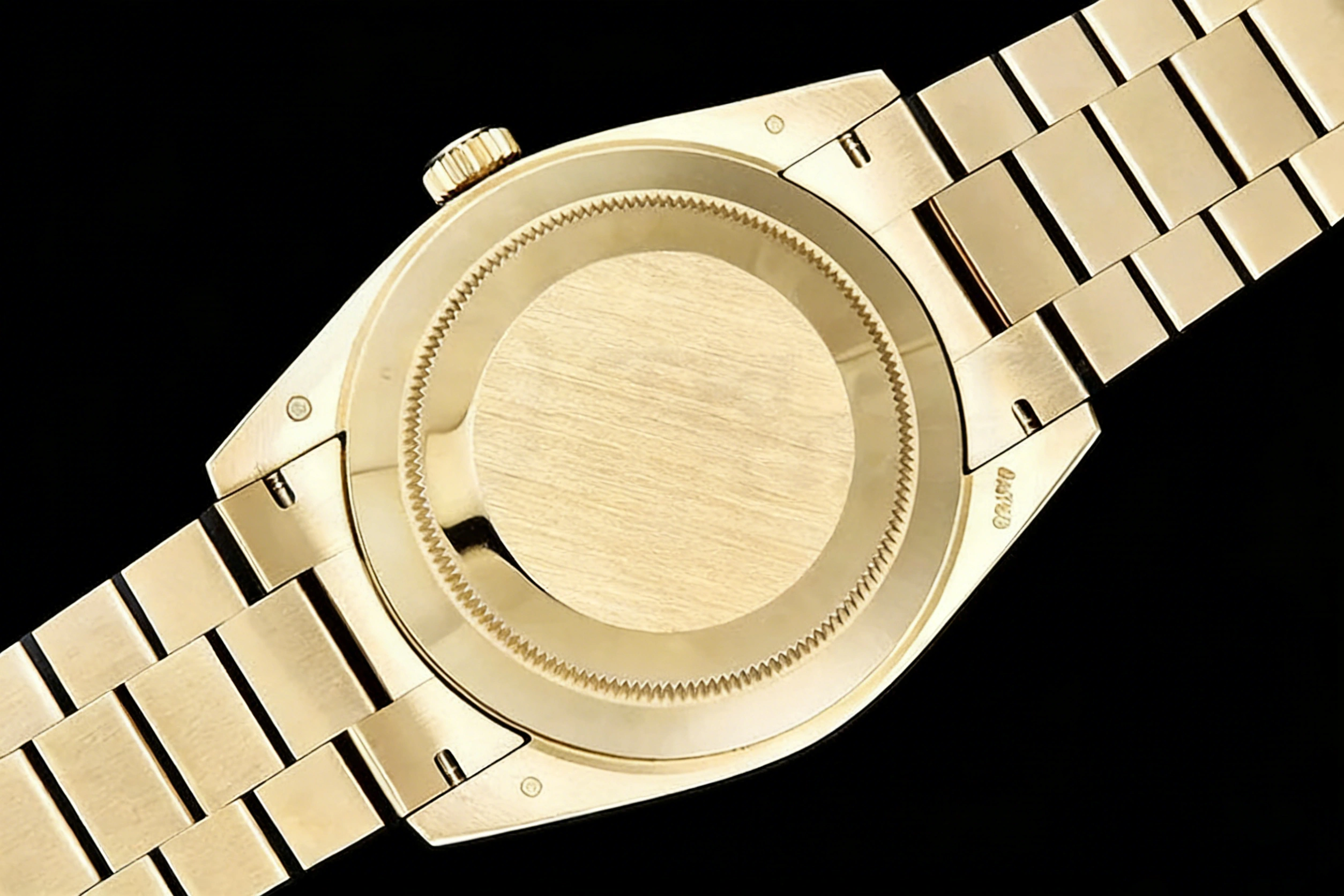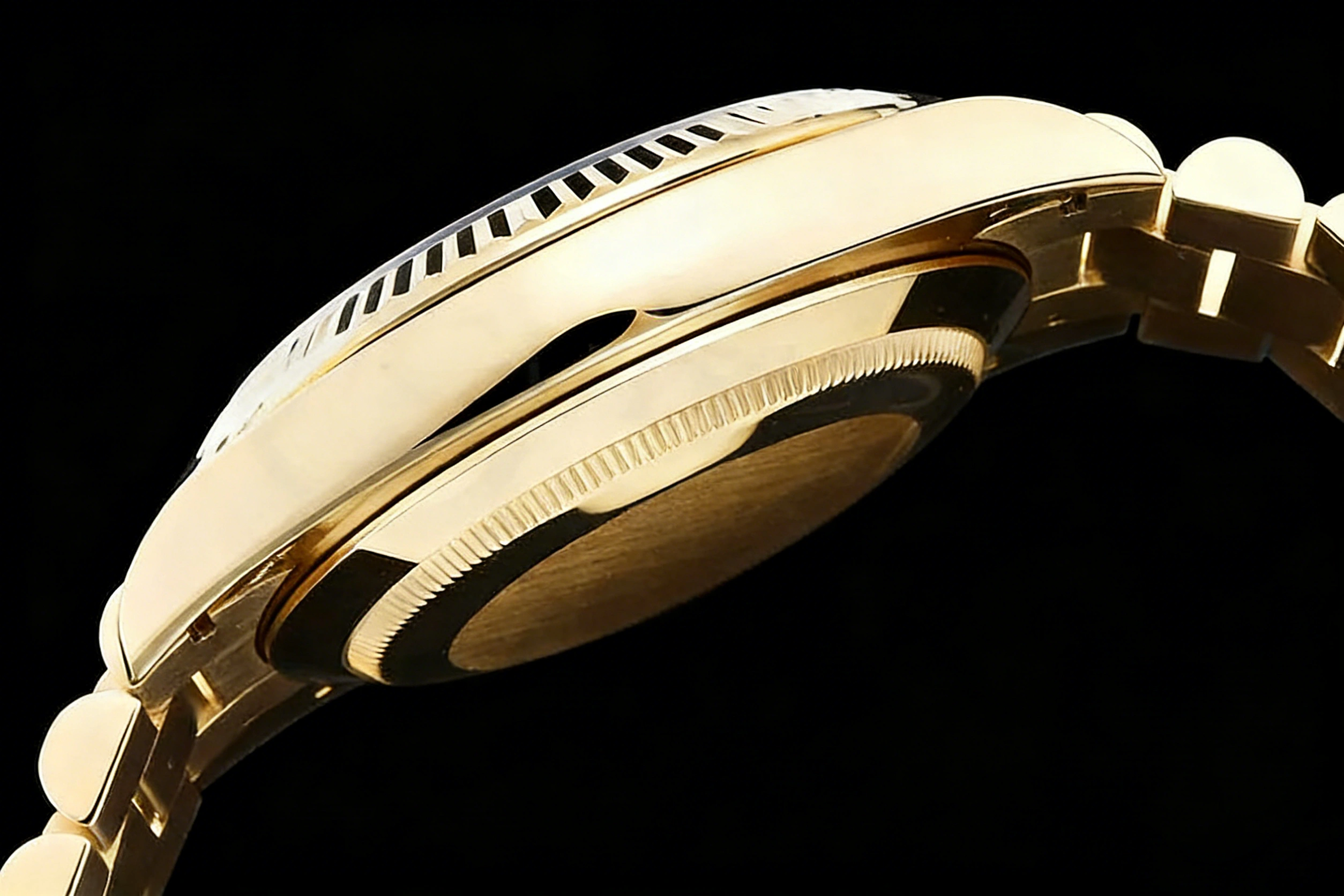 CASE MATERIAL: 18K Yellow Gold Plated on High Grade Solid Stainless Steel 904L with added weight