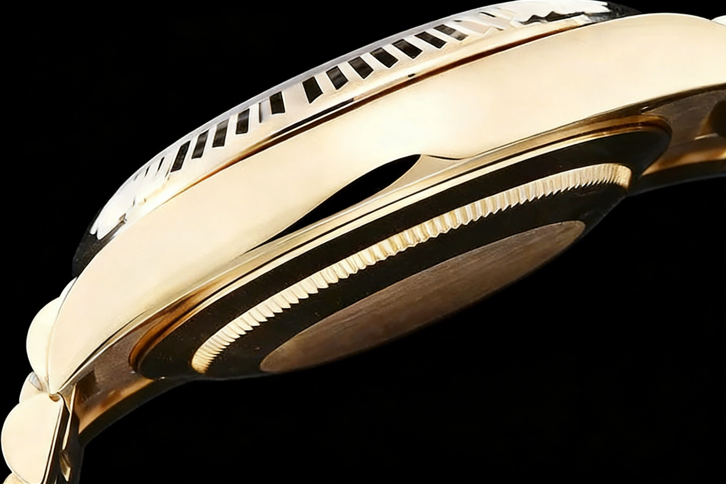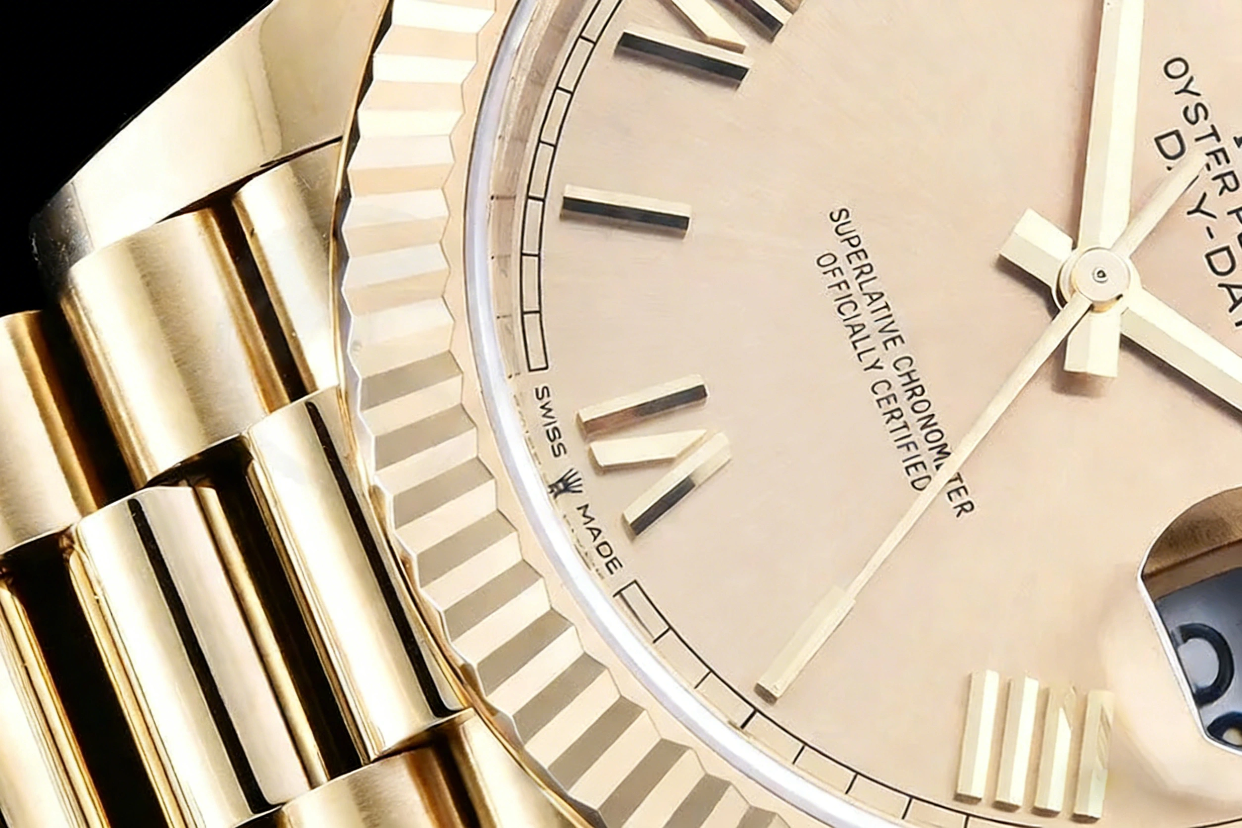 DIAL COLOR: Yellow Gold Dial with Roman Stick Markers